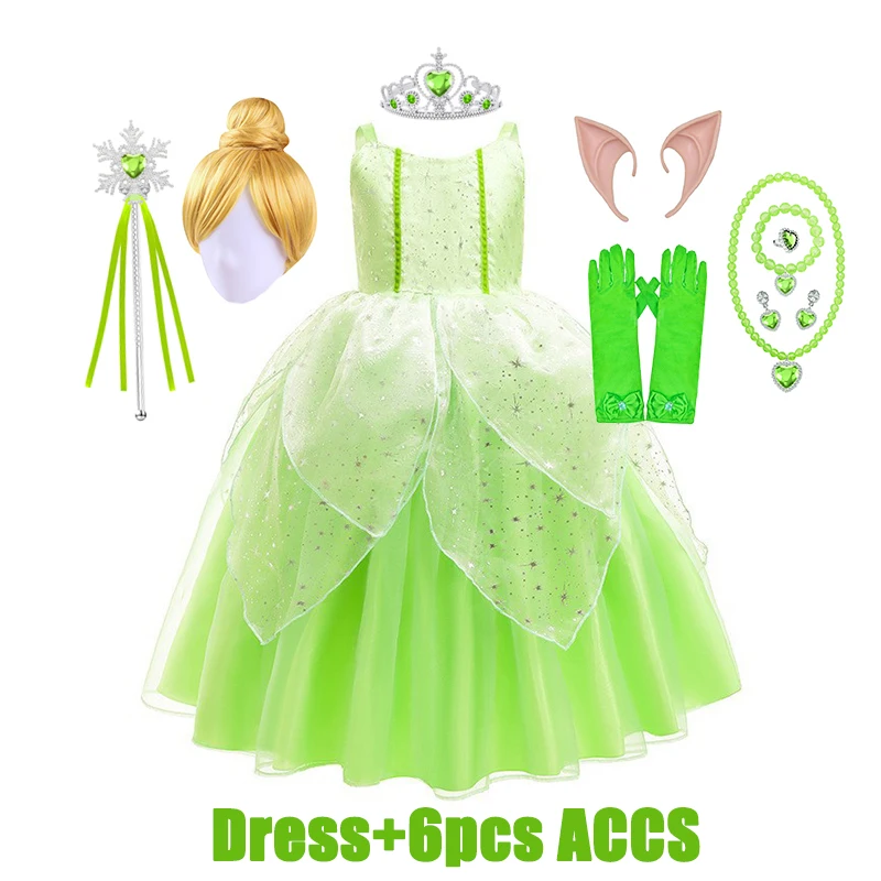 Costume de fée clochette pour filles, Costume d'halloween pour enfants, robe fantaisie verte Disney fée clochette, princesse féerique, Cosplay, fête de carnaval