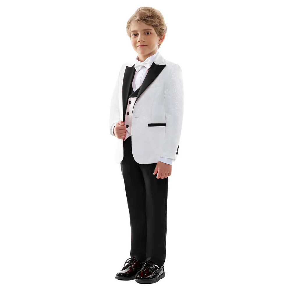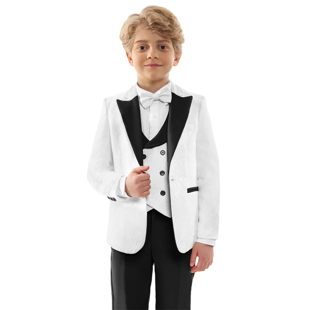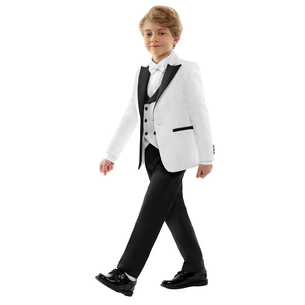 Ensemble de Costume de mariage classique pour garçons, costumes de smoking ajustés, Blazer, gilet, pantalon, nœud papillon, Costume de Piano de remise de diplôme, 4 pièces