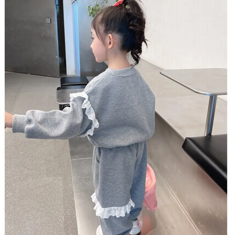 Ensemble de vêtements d'automne en dentelle pour bébés filles, sweat-shirt imprimé Sanrio Hello Kitty, haut et pantalon, costume 2 pièces