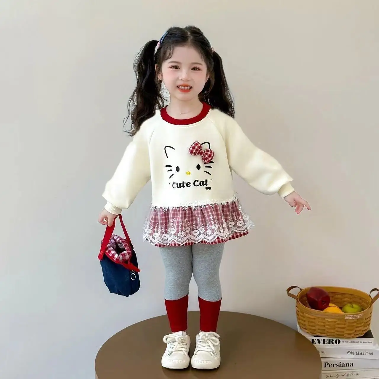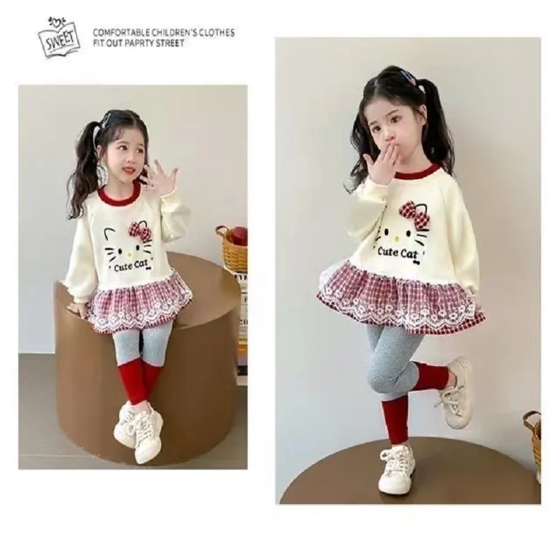 Ensemble de vêtements d'automne pour petites filles, sweat-shirt tricoté à pois, pull, haut et pantalon, bas, costume 2 pièces, survêtement