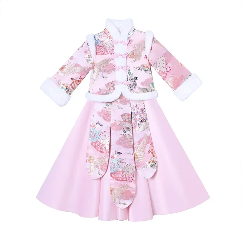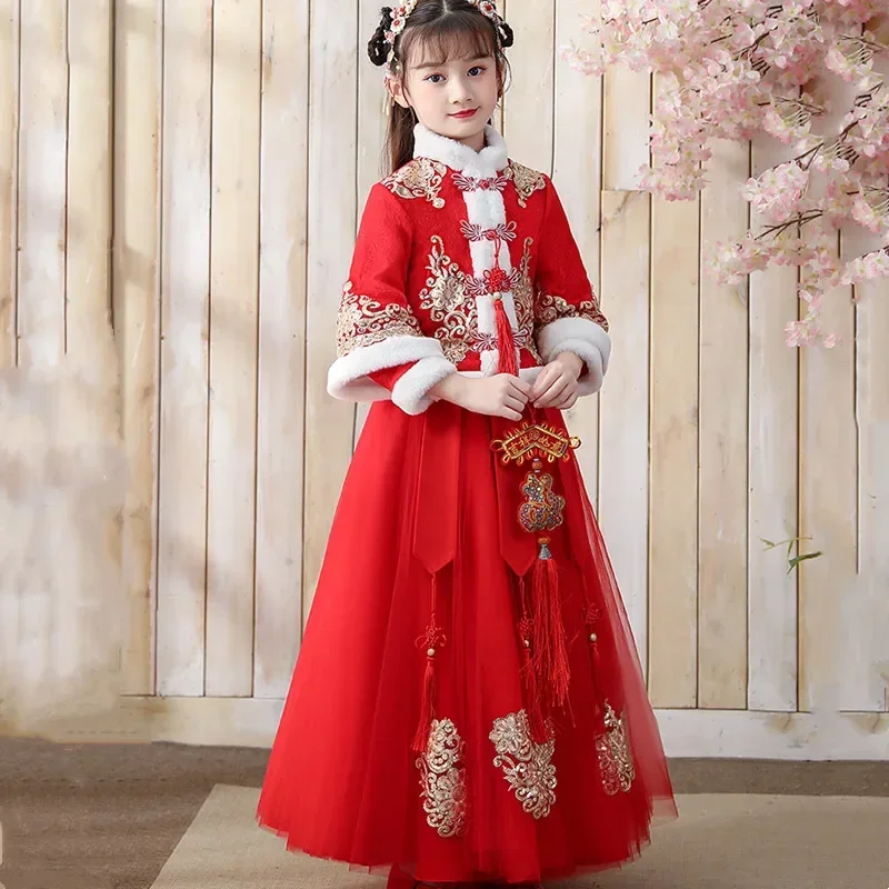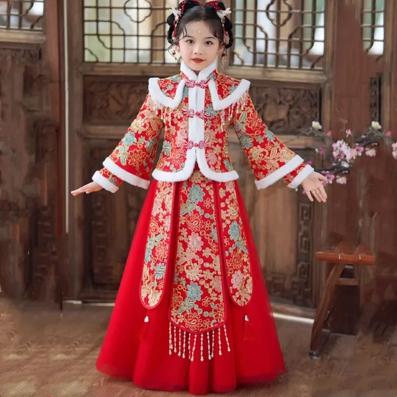 Ensemble Hanfu rouge épais pour filles, Costume ancien Tang pour filles, ensembles pour enfants, vêtements pour bébés du nouvel an chinois, hiver