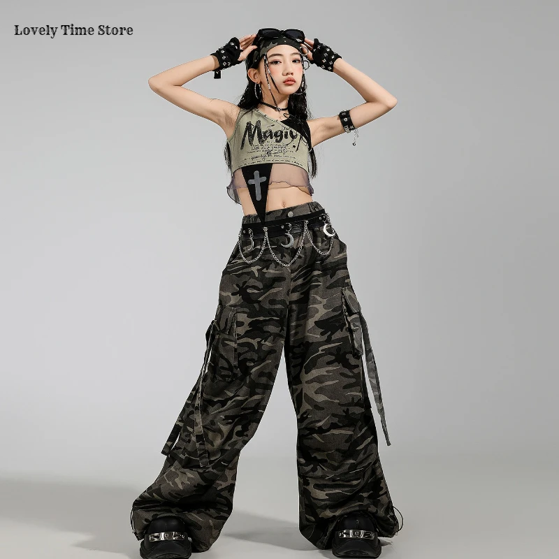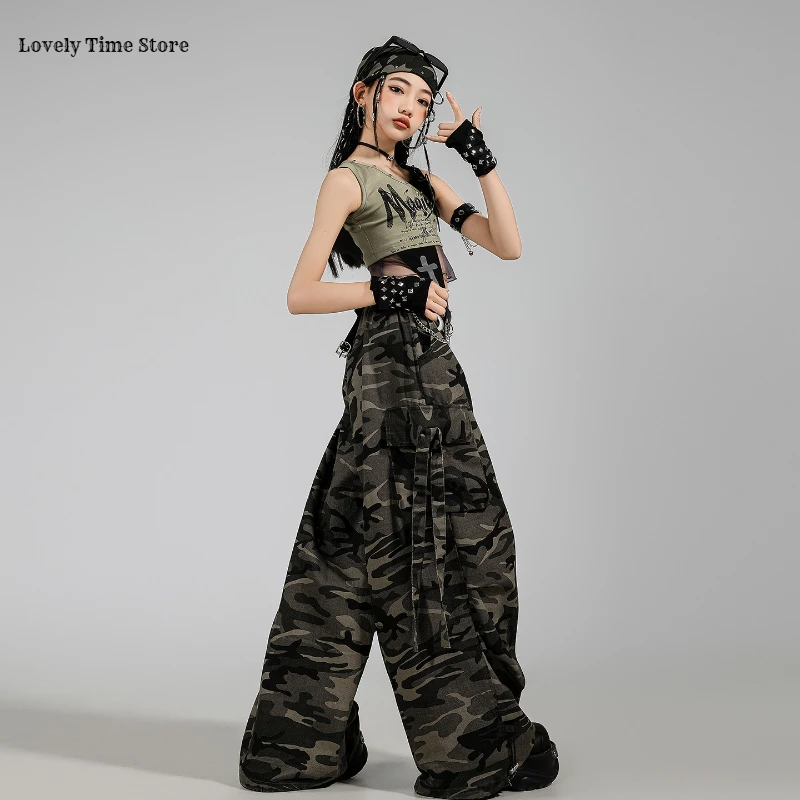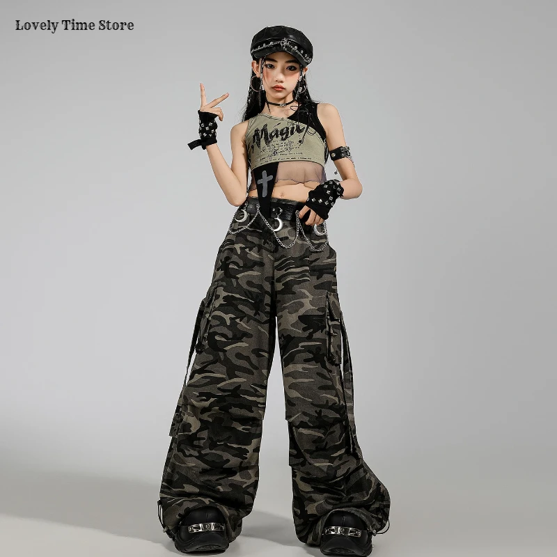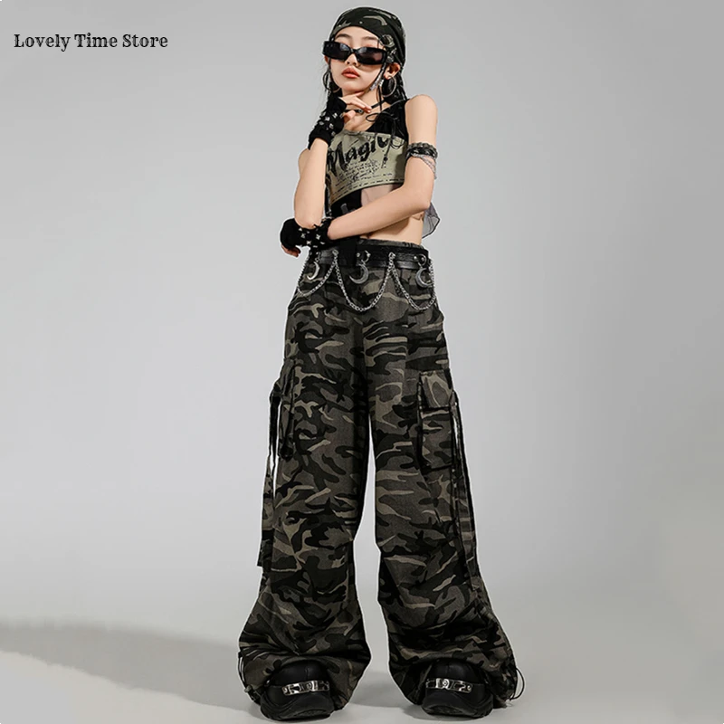 Filles K-pop Cool haut court Camouflage Cargo pantalon enfants Hip Hop Streetwear Costume enfant Jazz fille groupe rue danse vêtements ensembles