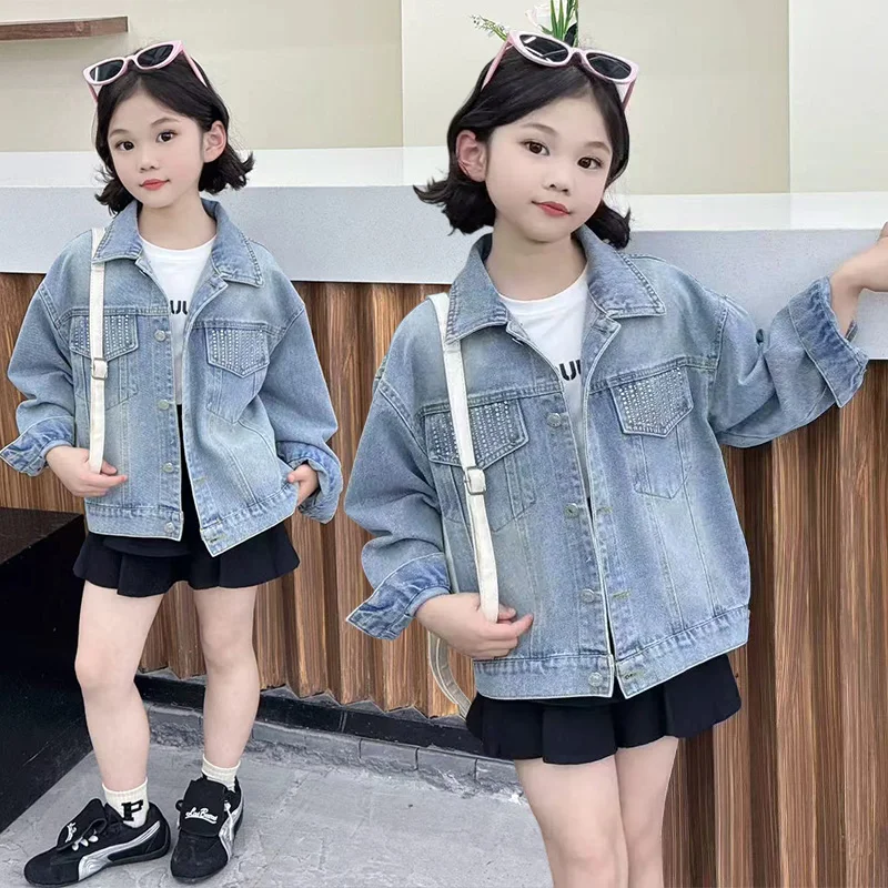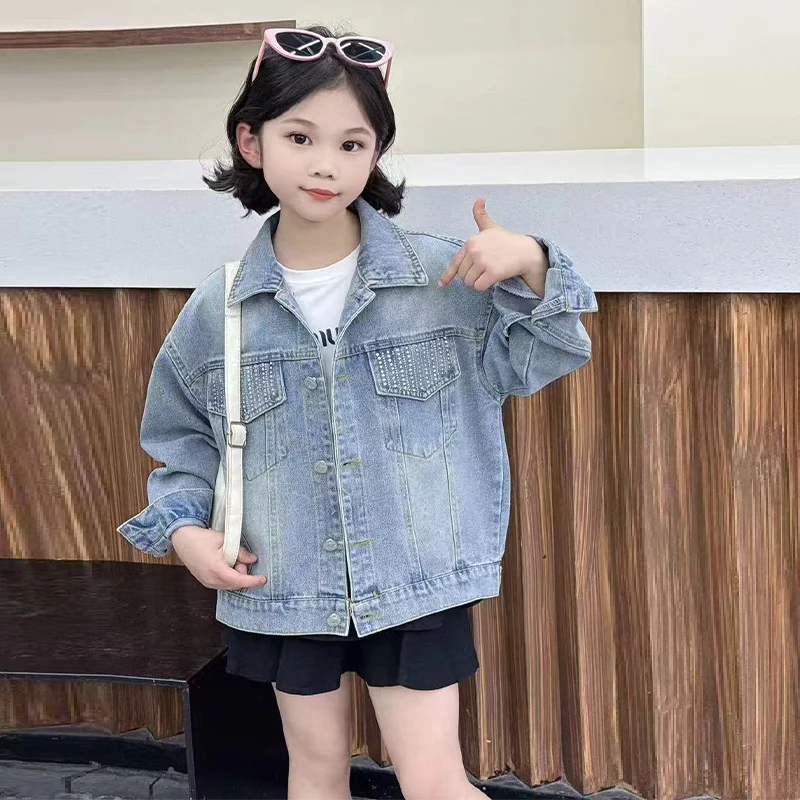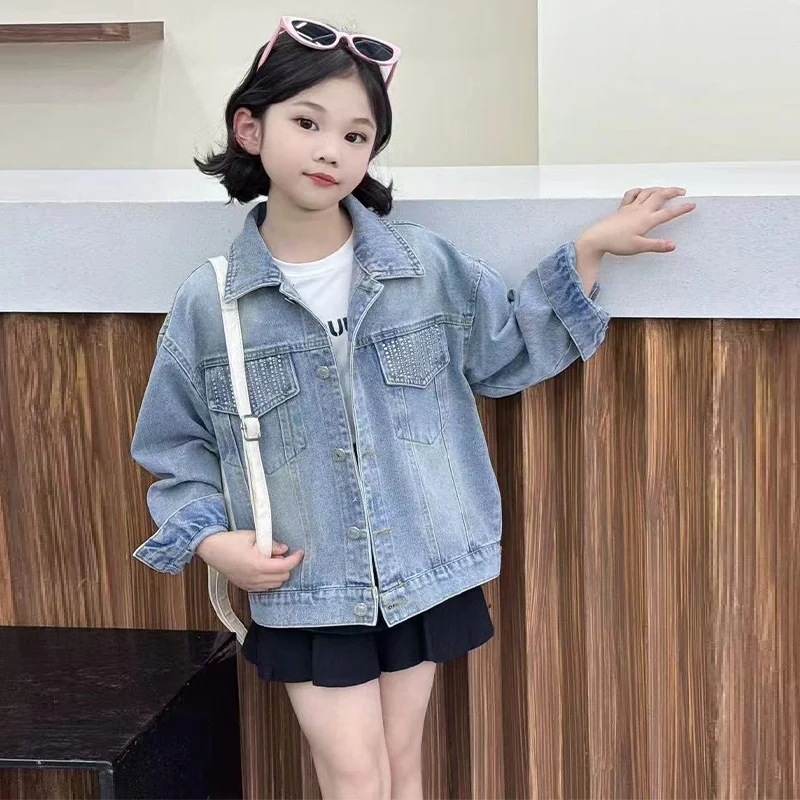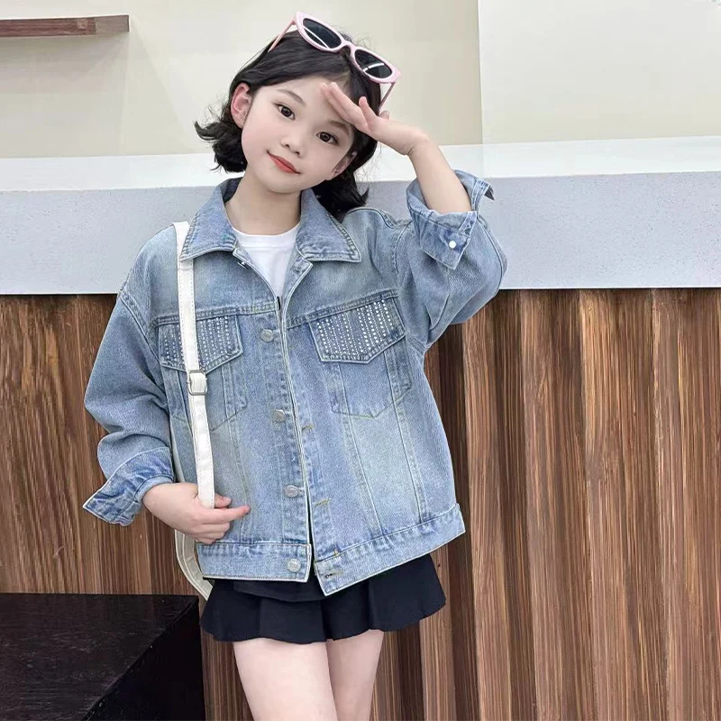 Mode à la mode enfants fille y2k Harajuku gothique en forme de coeur veste en jean avec strass pour Tweens enfant décontracté Streetwear manteau