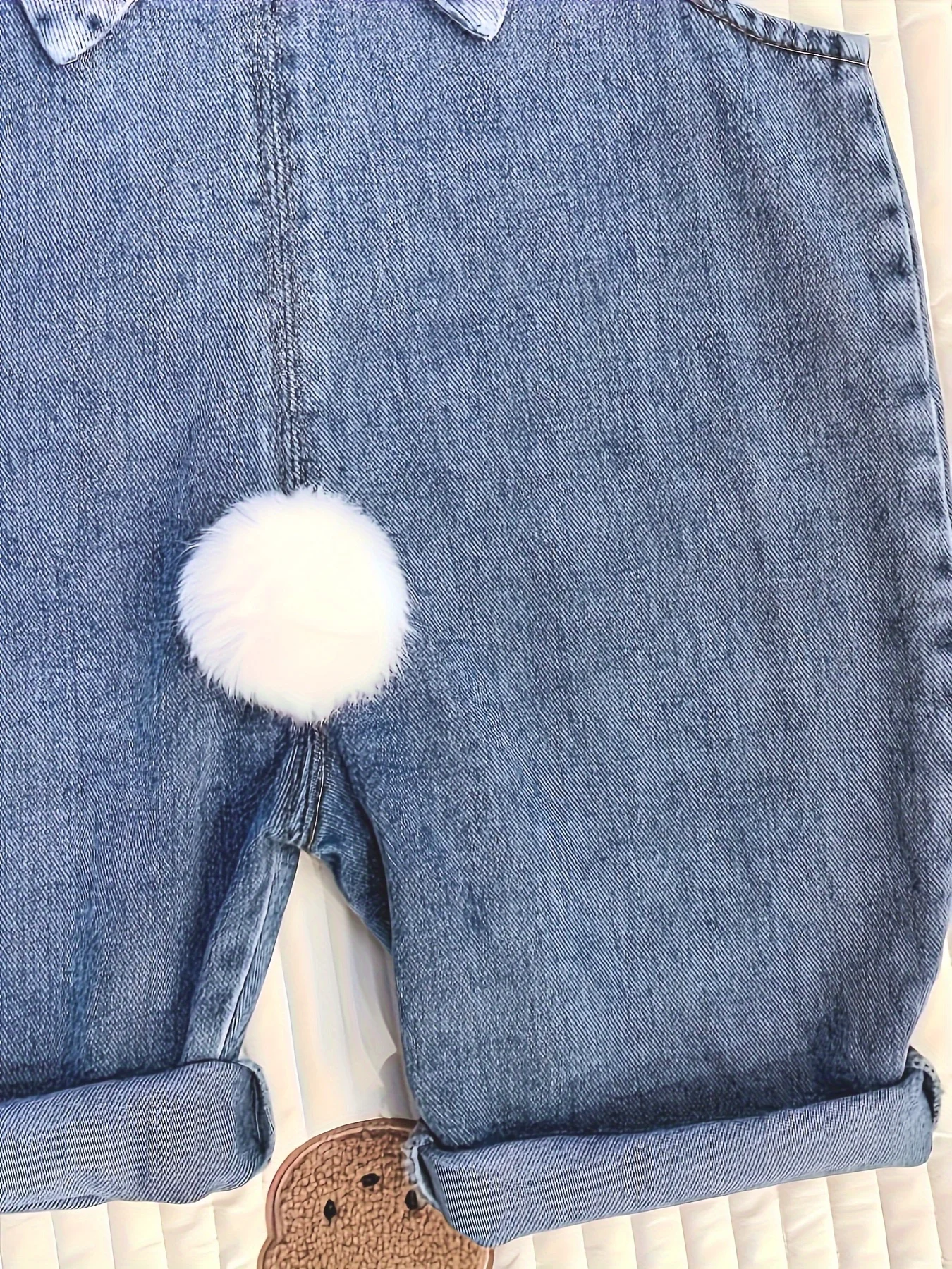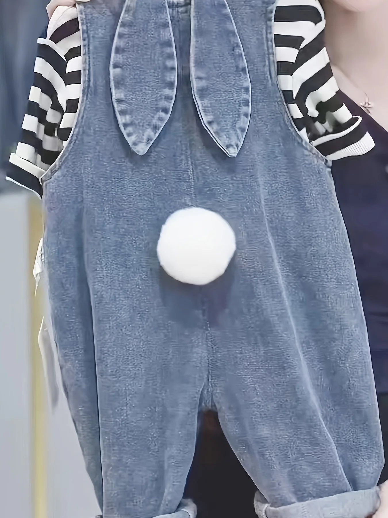 Pantalons cargo en denim pour enfants mignons avec détail d'oreille de lapin – Polyester élégant et confortable, lavables en machine, pantalons décontractés à jambes longues pour garçons et filles, vêtements d'automne pour enfants | Joli design d'oreilles de lapin | Denim en polyester, parfait pour l'extérieur
