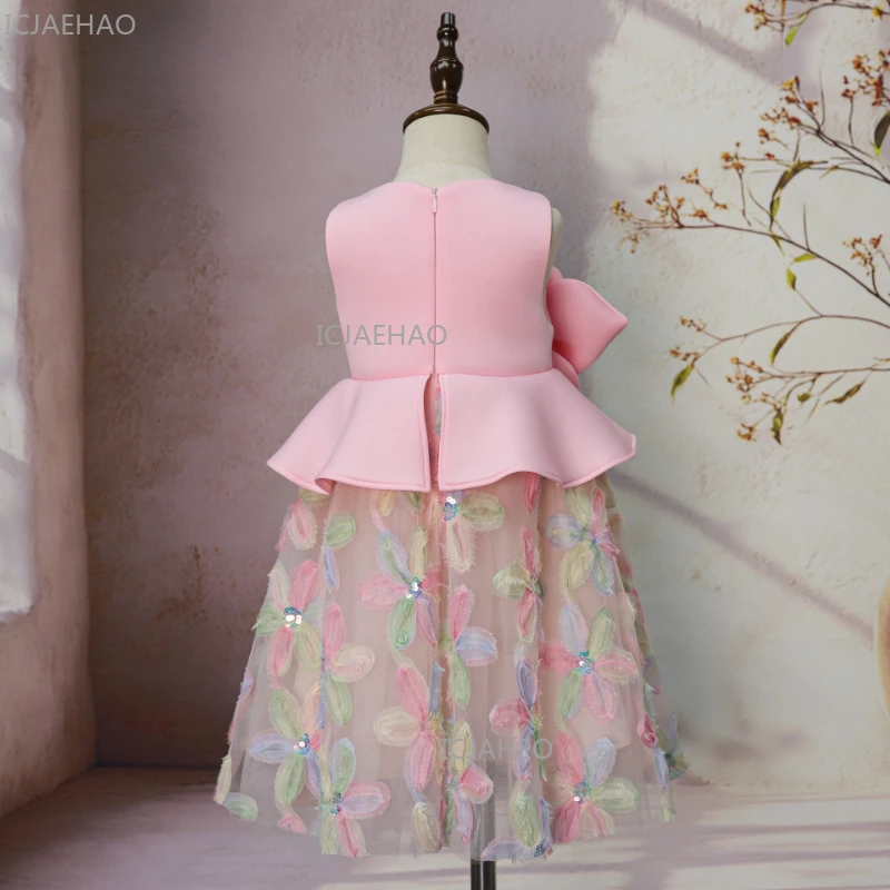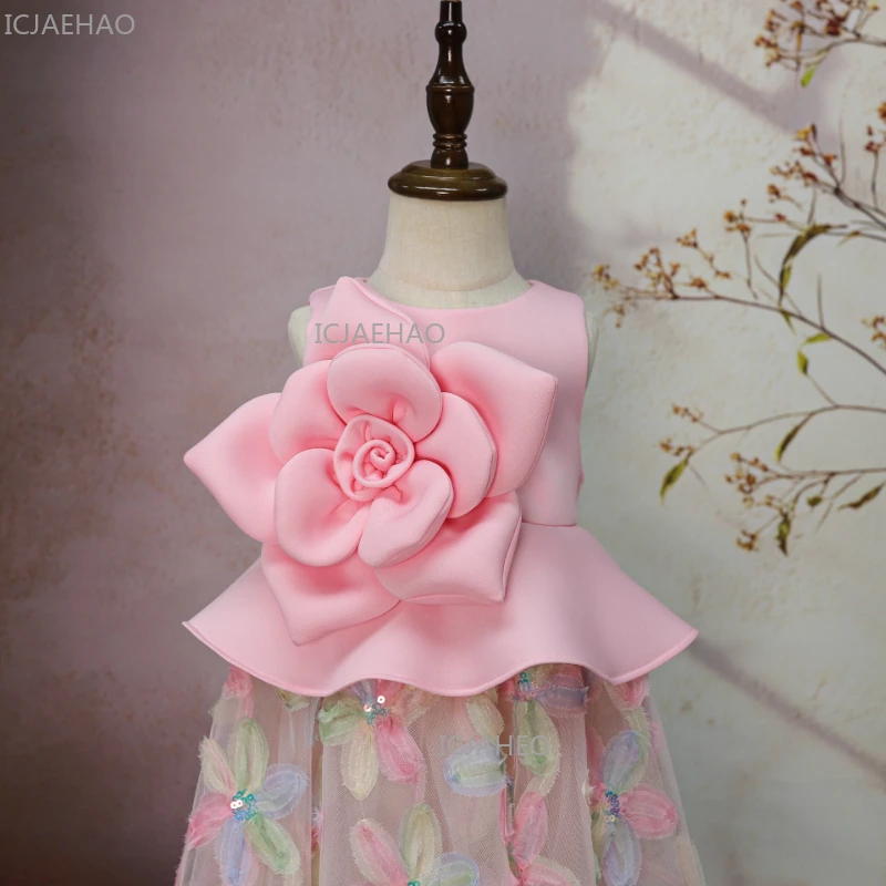 Robe de princesse pour filles de 1 an, robe florale 3D, robe de demoiselle d'honneur, robe de fête pour enfants, robe de spectacle, robe de cérémonie pour enfants