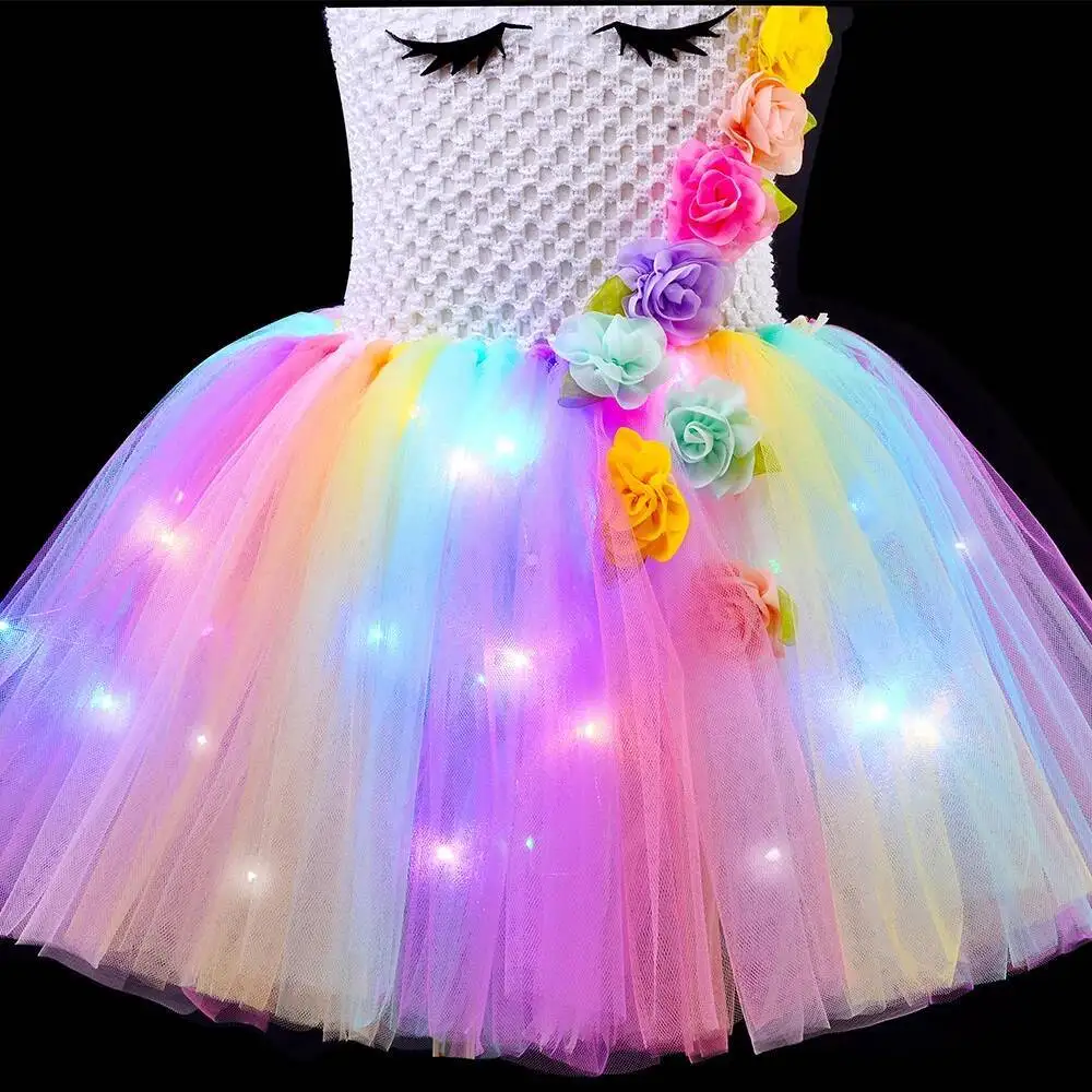 - Led Light Flowers Girls Unicorn Dresses