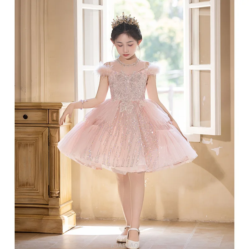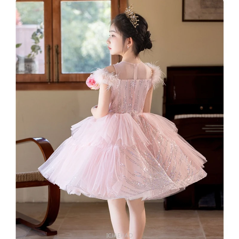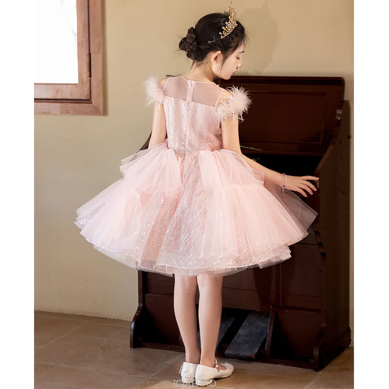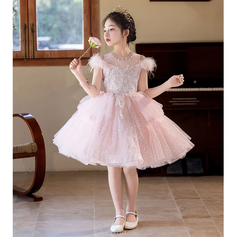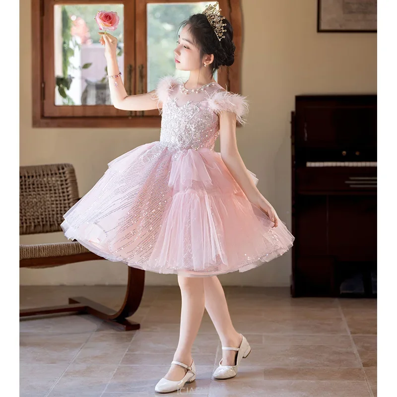 Robes de soirée robe rose fleur princesse robe hôte Piano récital tenue enfants Costumes fille robe de mariée enfants anniversaire