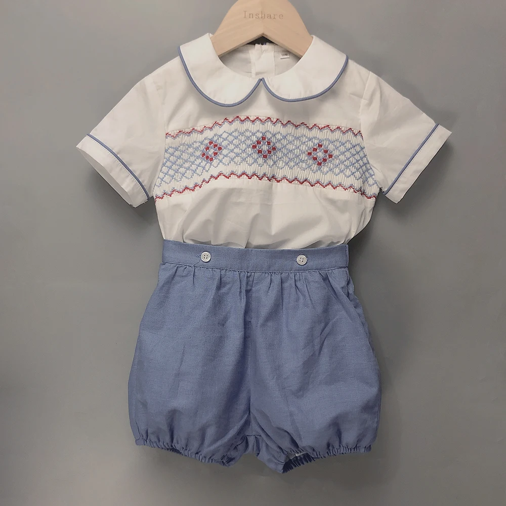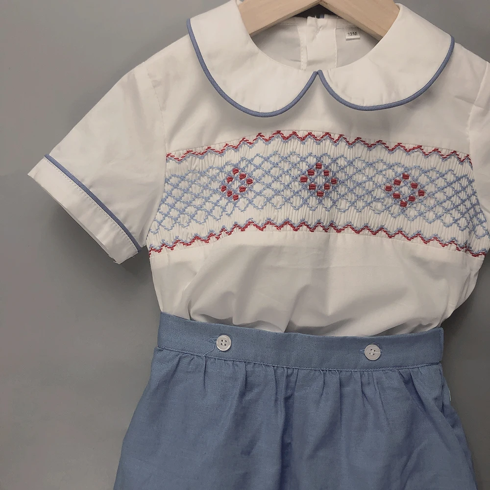 Vêtements de boutique pour enfants, ensemble brodé smocké fait à la main, rayure, coton, manches courtes, robe d'anniversaire BABI, robe de baptême Eid