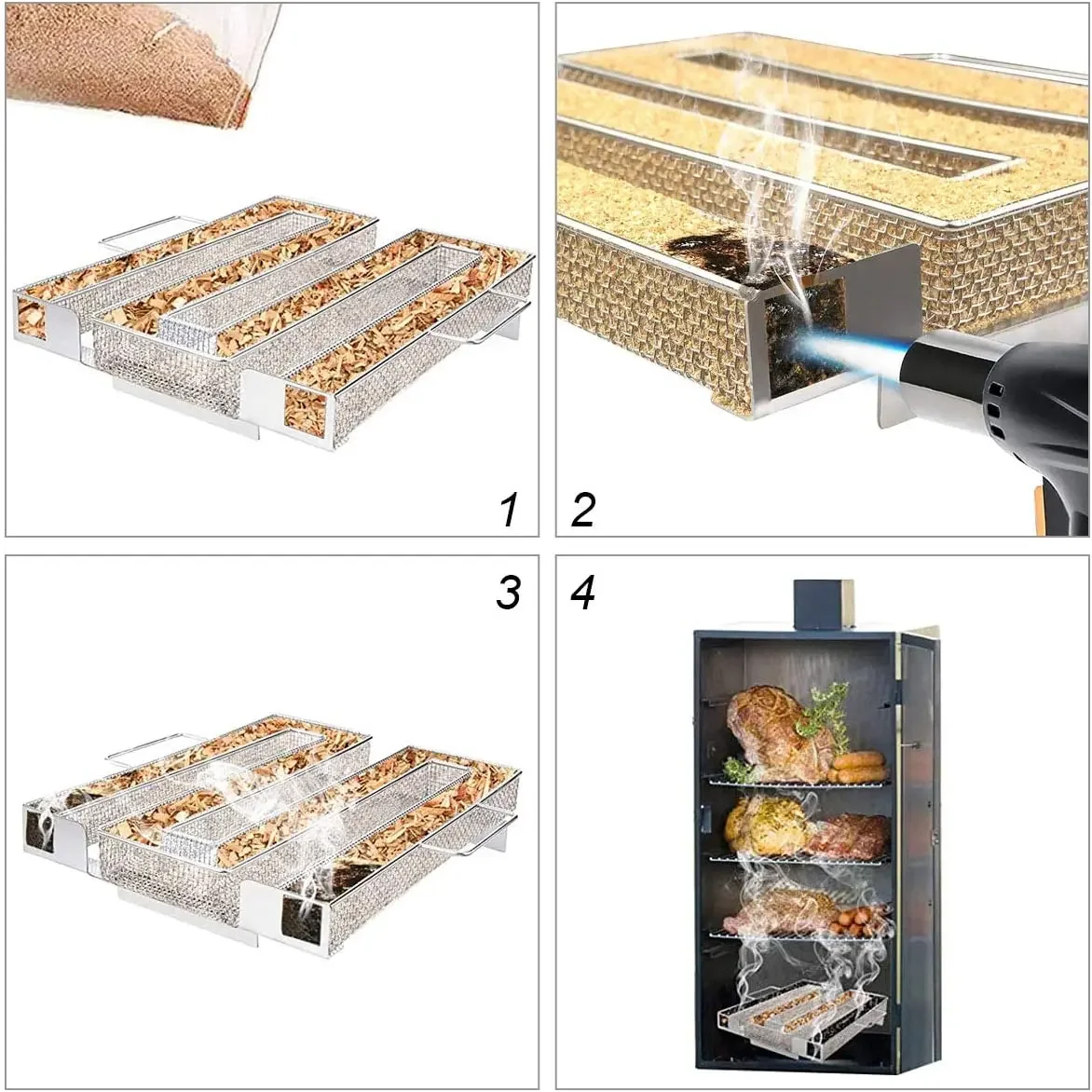 Boîte à fumée pour Barbecue, générateur de fumée froide, filet de gril en acier inoxydable, filet de Barbecue pour fumer en plein air, accessoires pour outils de Barbecue