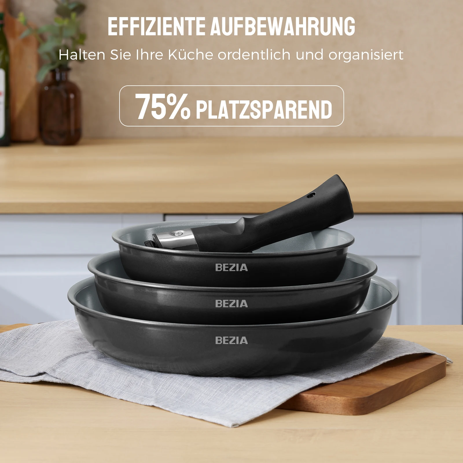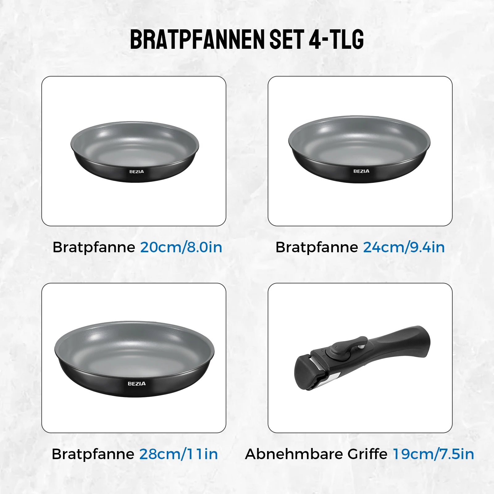 Ensemble de poêles à frire avec revêtement en céramique, ensemble de poêles à induction pour toutes les plaques de cuisson, poignée parfaite, 20 cm, 24 cm, 28 cm