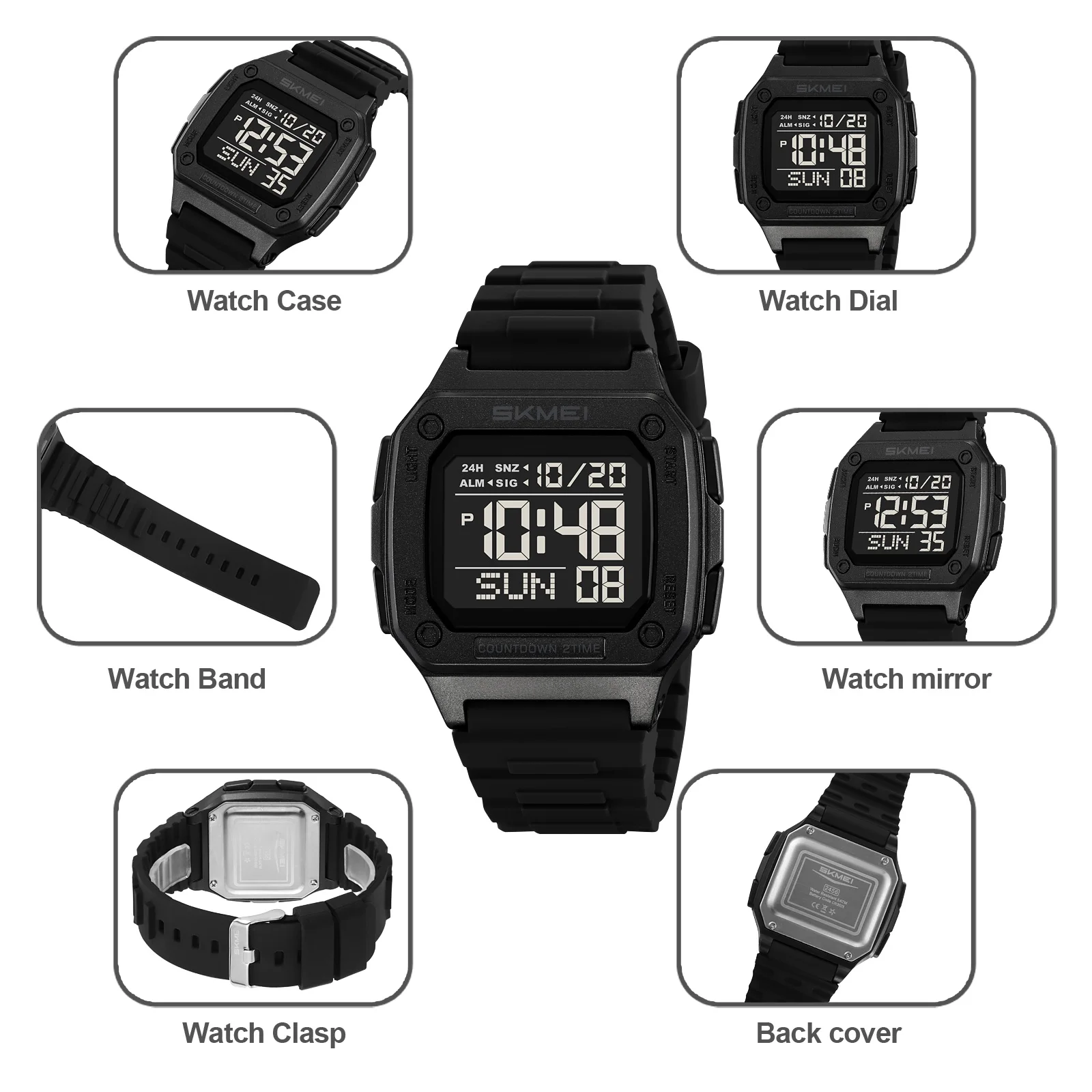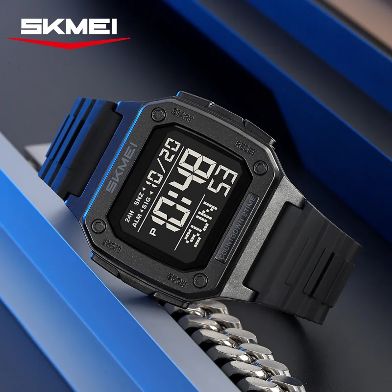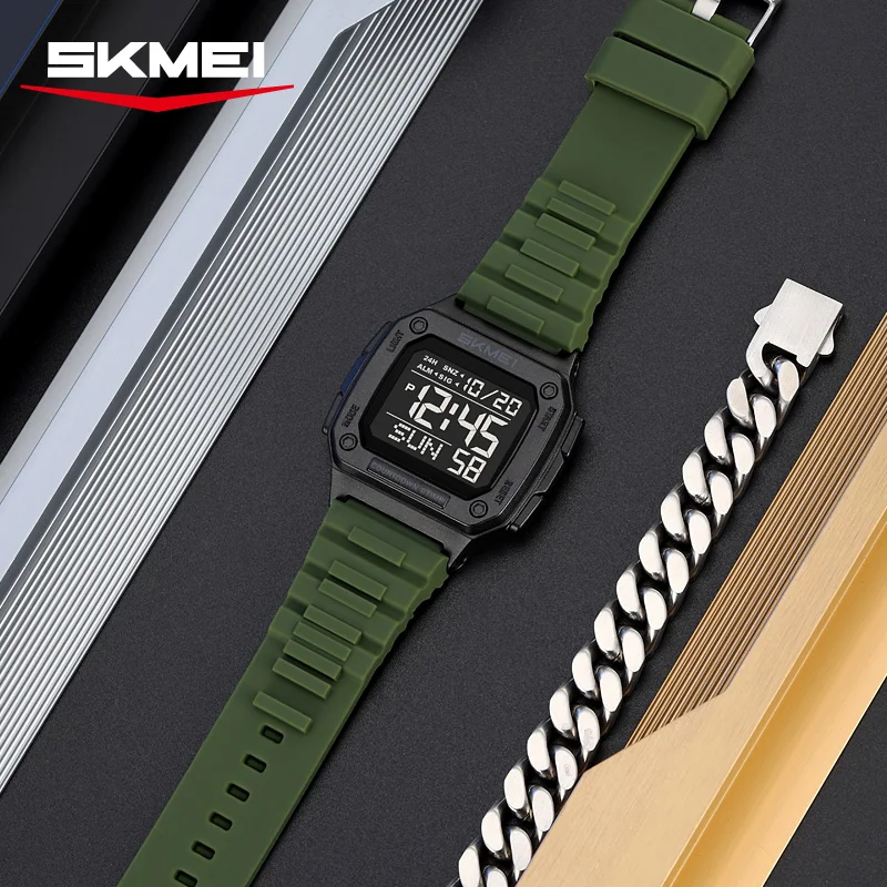 SKMEI 2456 Nouvelle montre numérique de sport d'extérieur pour hommes, étanche, montre-bracelet électronique numérique LED pour hommes, affichage de l'heure, Reloj Hombre