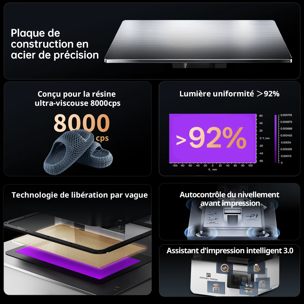 Imprimante 3D ANYCUBIC Photon P1 à résine prenant en charge l'impression bicolore et multi-matériaux, plaque de construction en acier rectifié de précision pour les amateurs