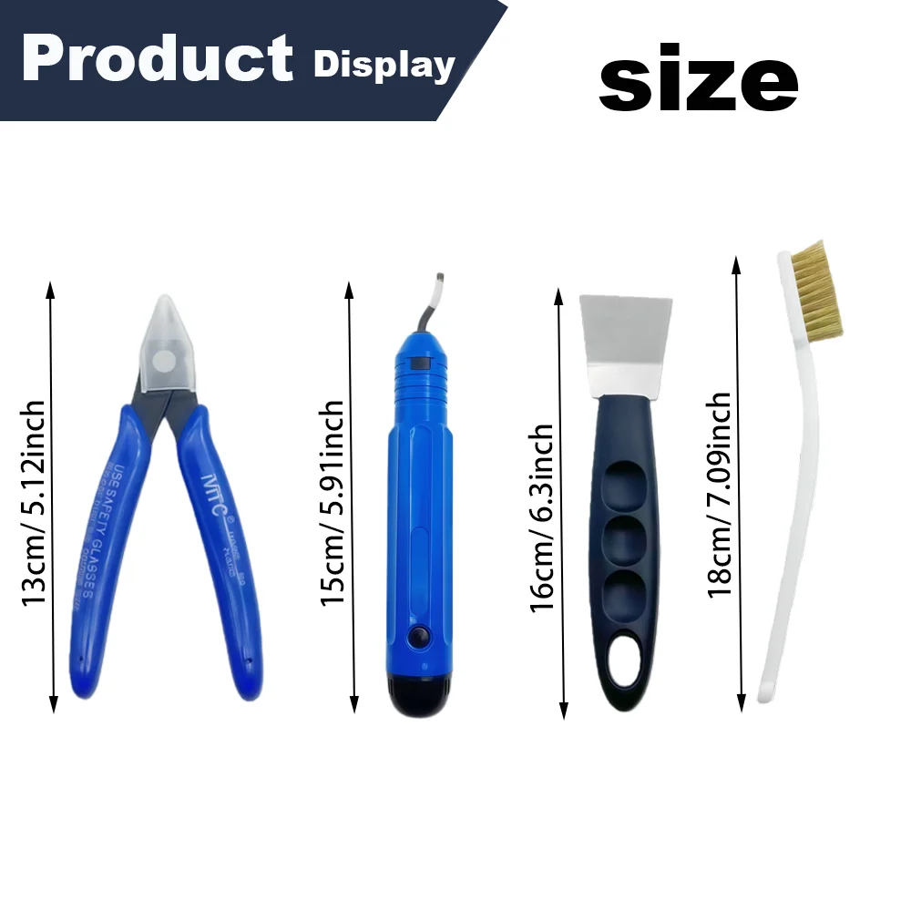 - Kit complet avec ciseaux, aiguilles, pinces et débavurage pour tous les besoins en impression 3D.