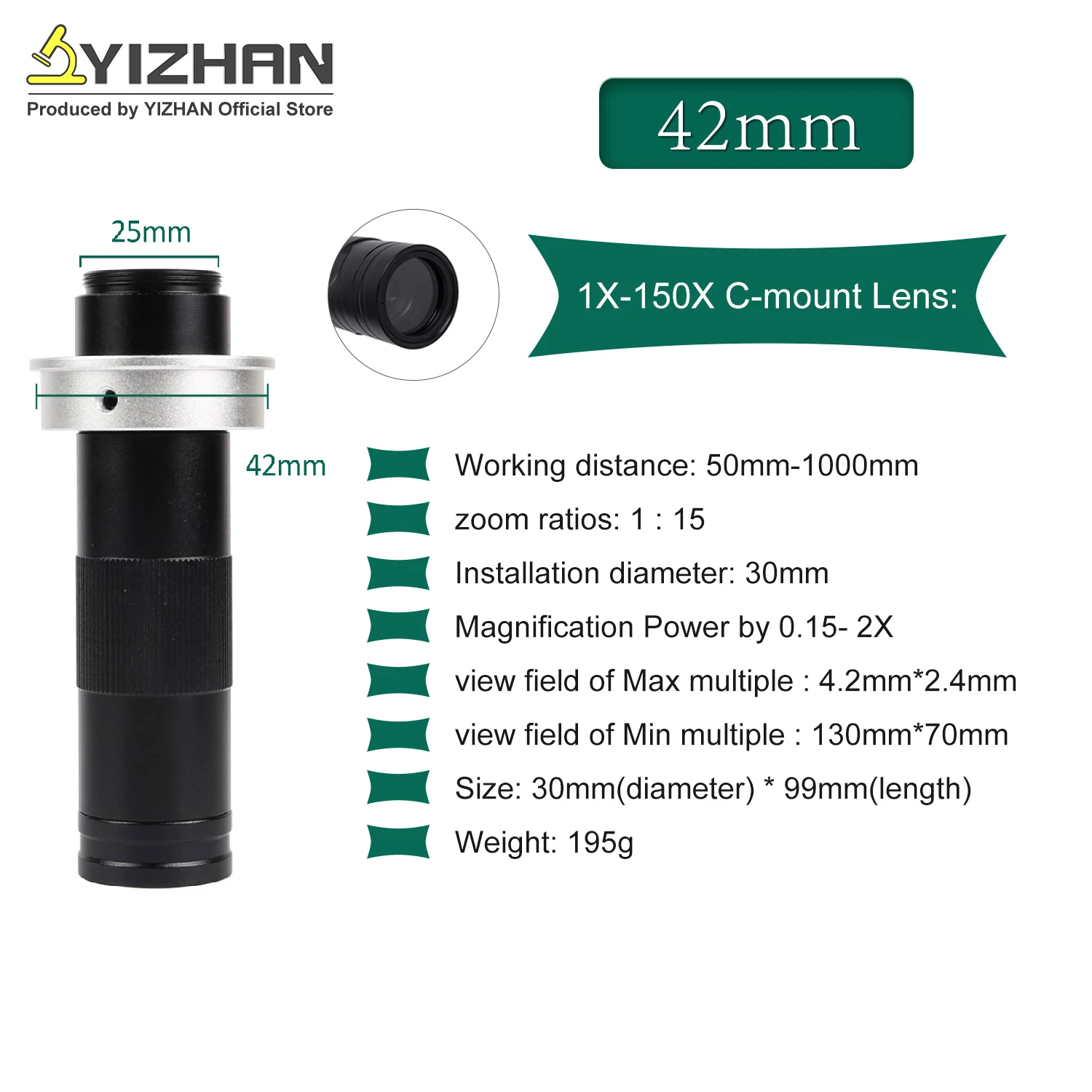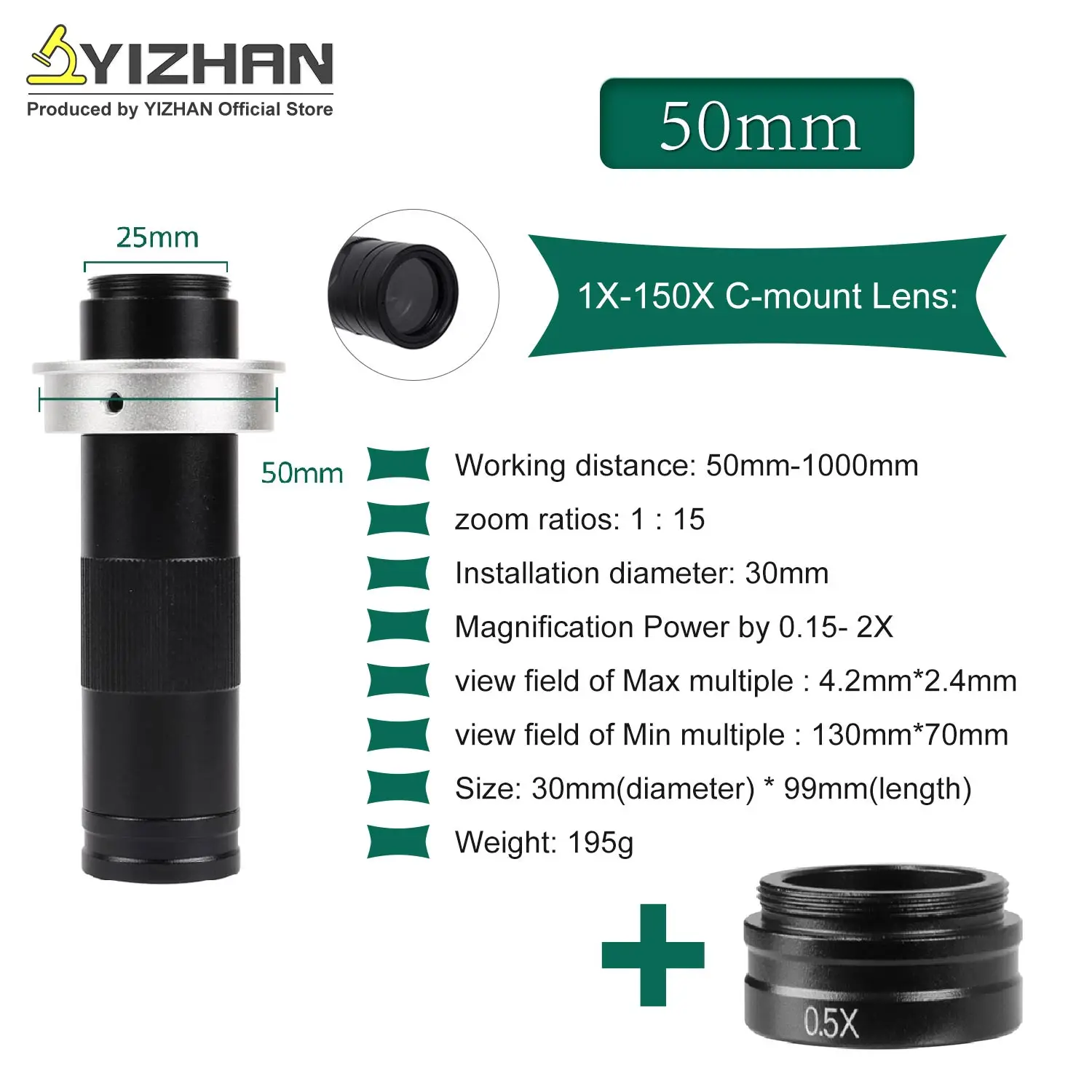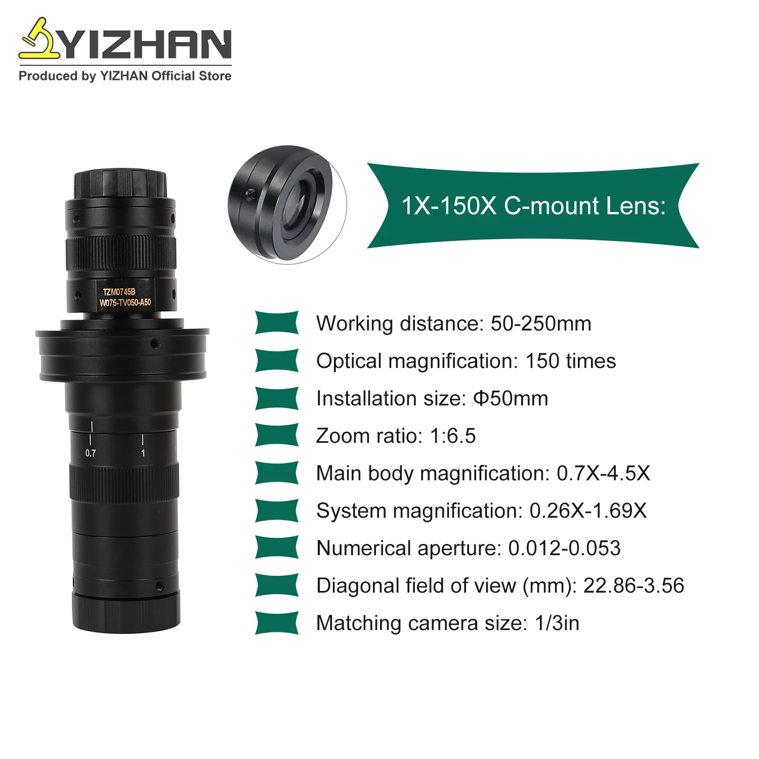 YIZHAN 215x 180x 150x objectif 0.7X ~ 4.5X grossissement réglable industrie Microscope lentille Multiples CS C-MOUNT pour caméra USB HDMI
