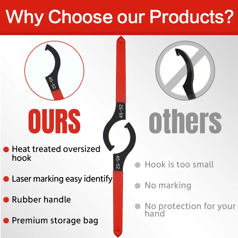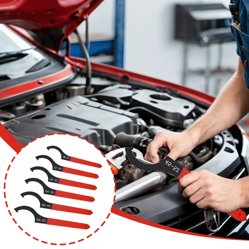 Jeu de 6 clés pour amortisseurs, clés à molette à crochet, clés en forme de C pour le réglage du système de suspension et des amortisseurs, 6 tailles différentes pour répondre à divers besoins