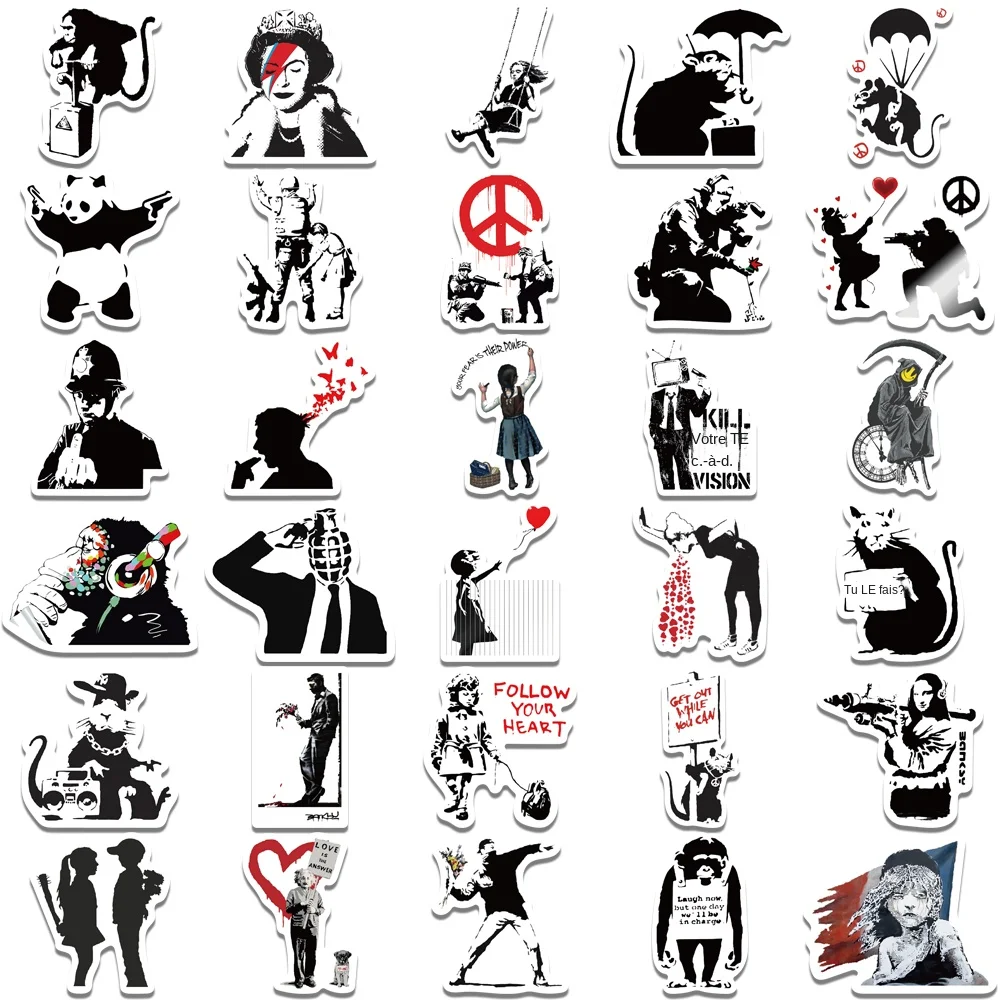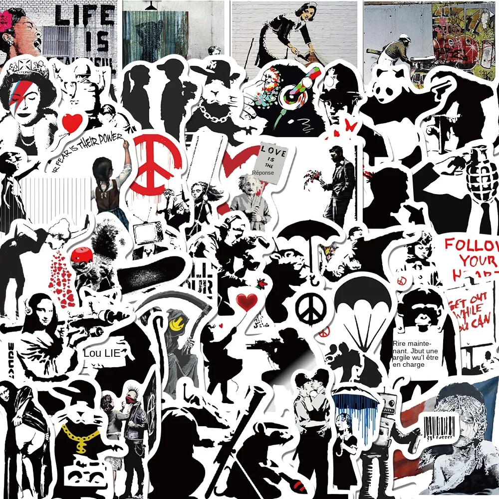 67 pièces Banksy Sculptures lanceur de fleurs autocollants Cool Street Art Graffiti décalcomanies pour bagages ordinateur portable Skateboard téléphone vélo