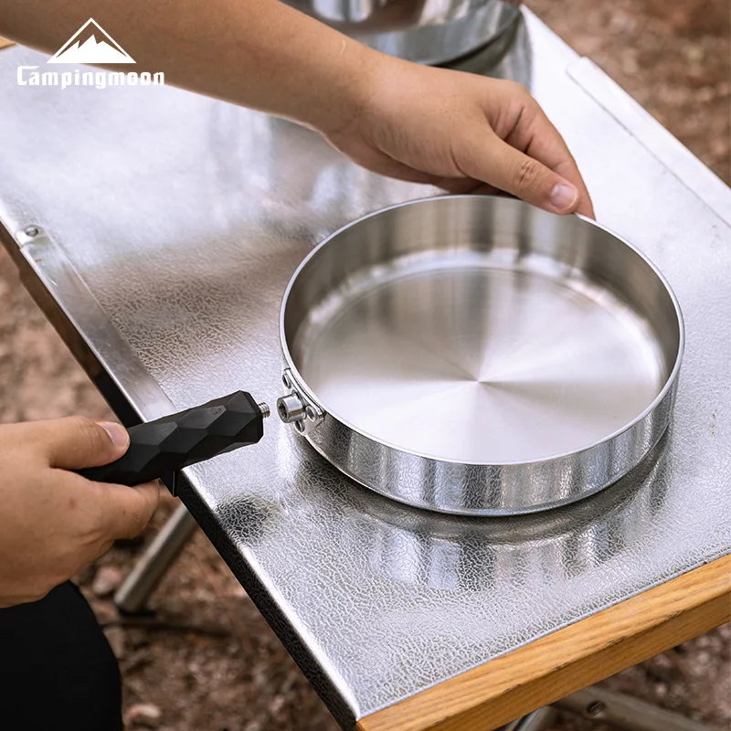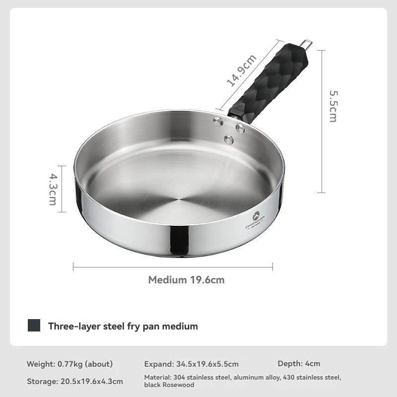 Poêle à frire CC-19 en acier triple couche antiadhésive, compatible induction, en acier inoxydable 304, pour camping et cuisson au gaz
