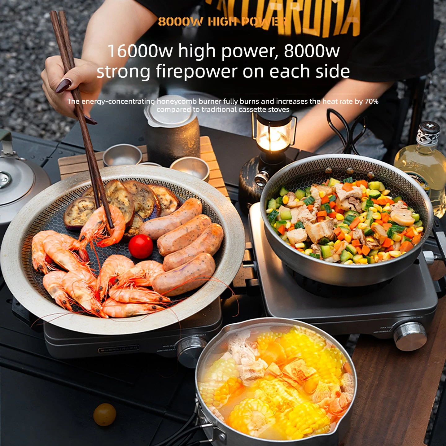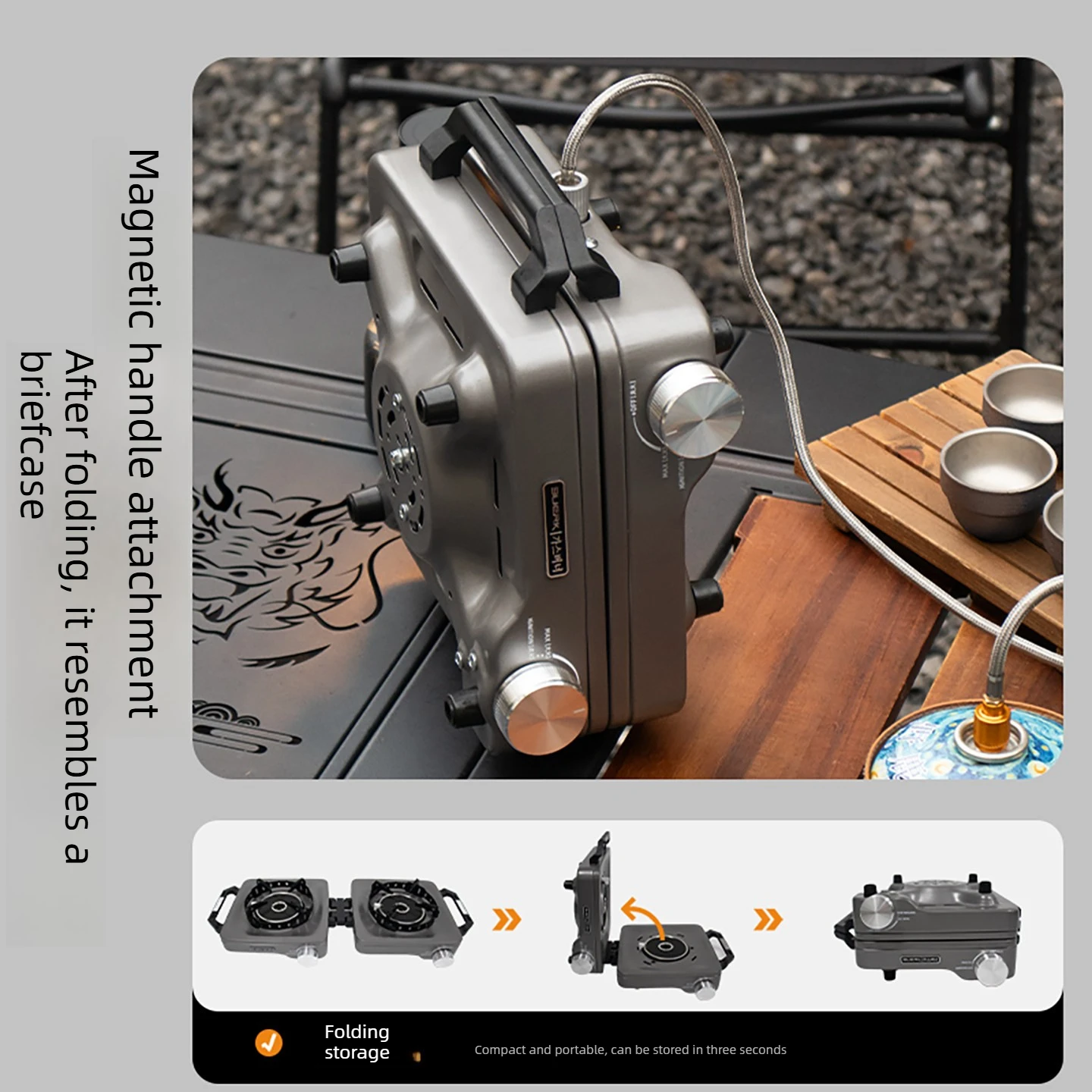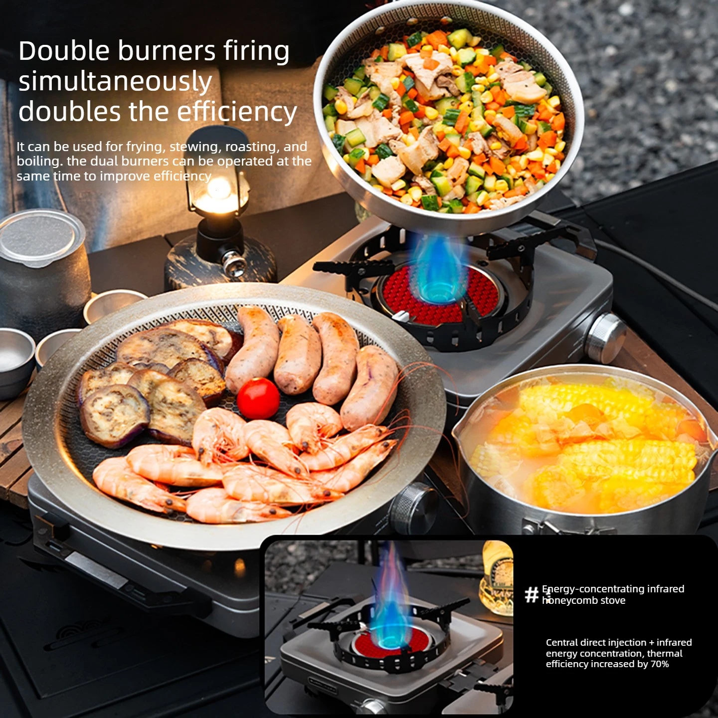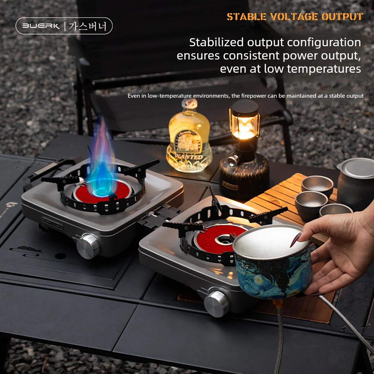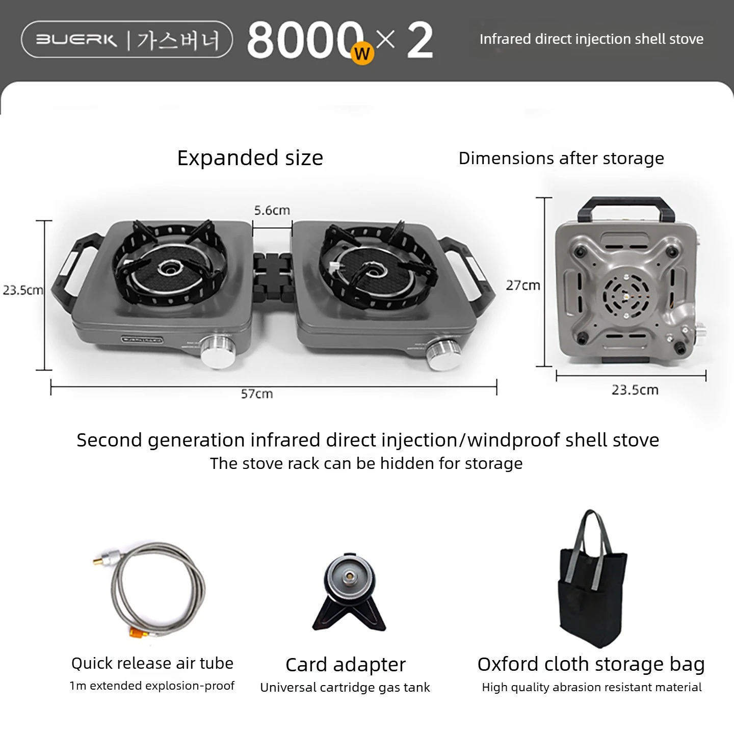 Réchaud de camping BUERK, réchaud à gaz portable, double brûleur, réchaud infrarouge pliable, ensemble de cuisson pour barbecue en plein air