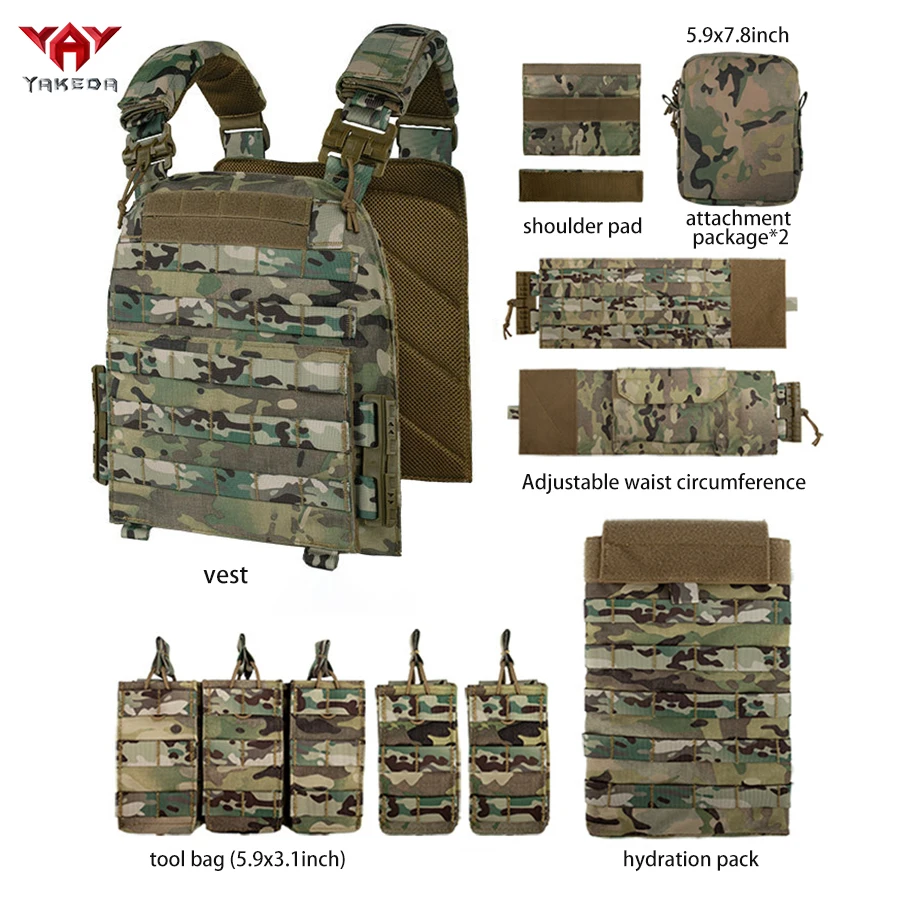 Gilet de chasse YAKEDA pour extérieur avec sac à eau de 1,5 L, ensemble d'accessoires modulaires à combiner librement