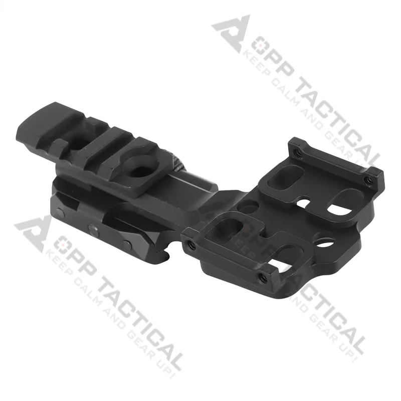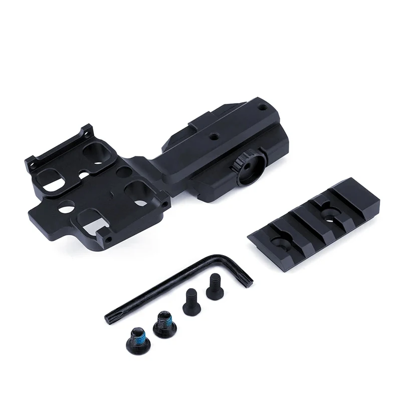 Dimensions standard pour montages hybrides : hauteur ajustable de 1,5 à 2 cm, compatible avec rails Picatinny de 21 mm.