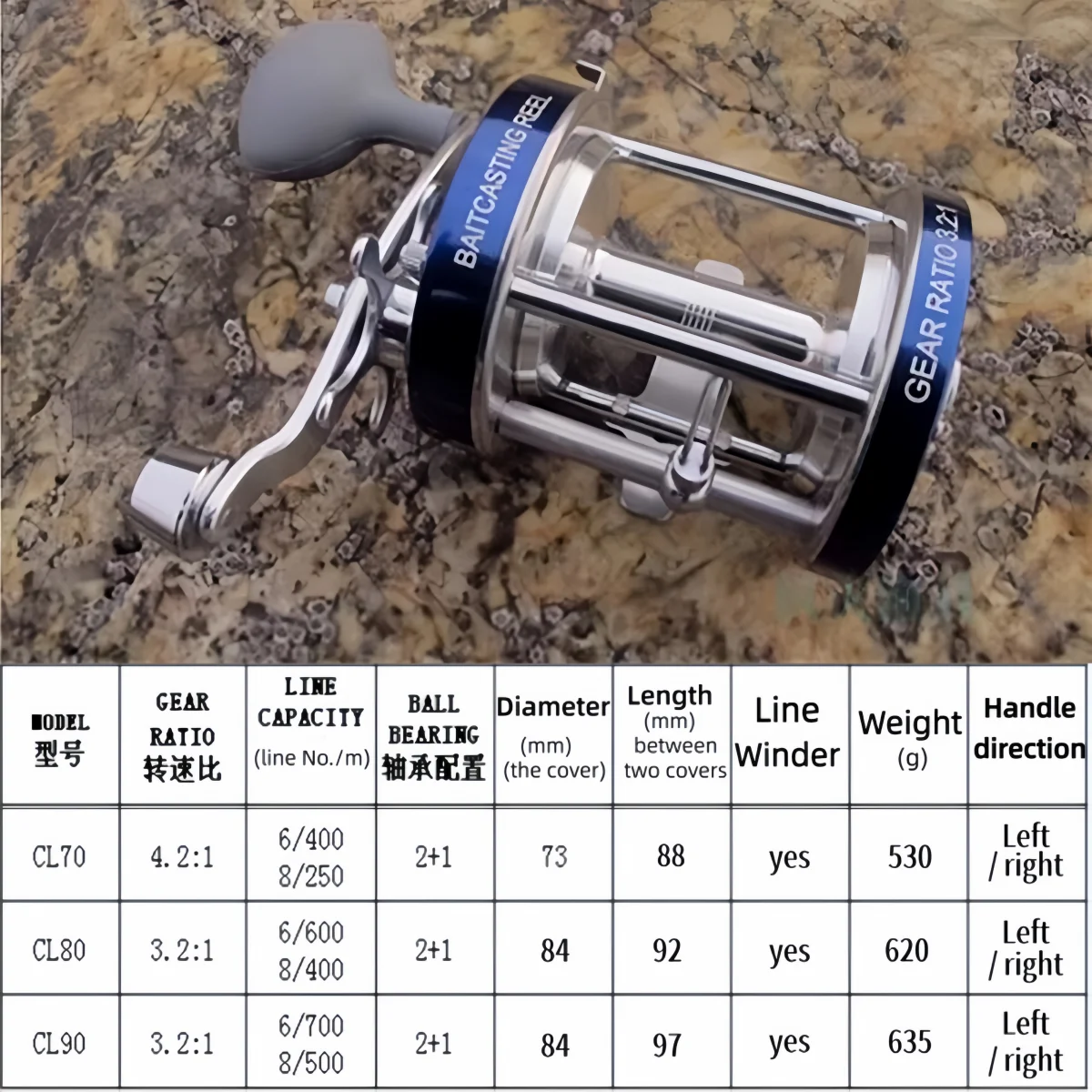 CL90-Moulinet de pêche entièrement en métal pour bateau rapboat, à la traîne, à gauche, en eau salée, antirouille, gros tambour