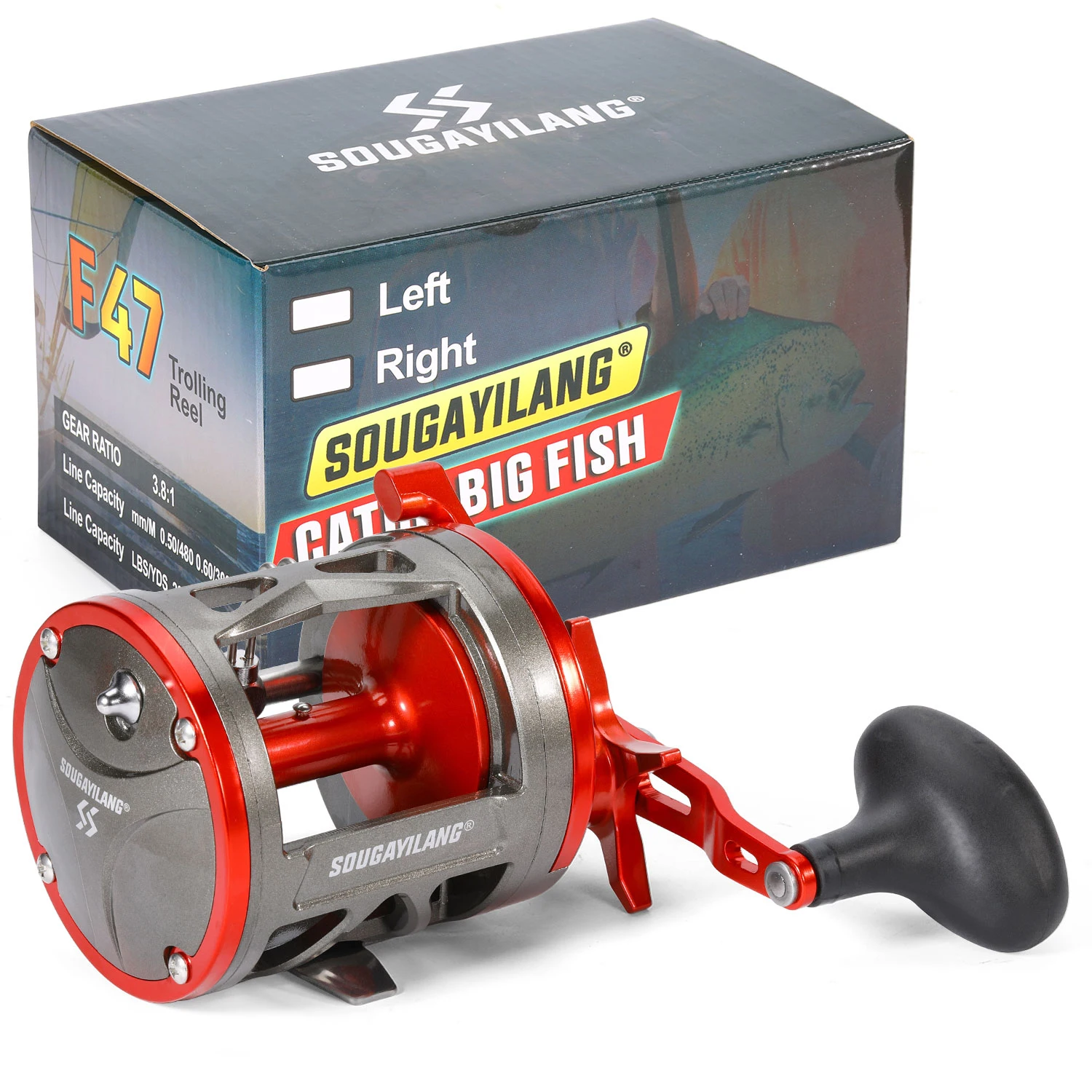 Sougayilang Baitcasting moulinet pêche à la traîne tambour moulinets gauche/droite 3.8 vitesses tambour de pêche à la traîne moulinet de pêche traînée maximale 28kg Pesca