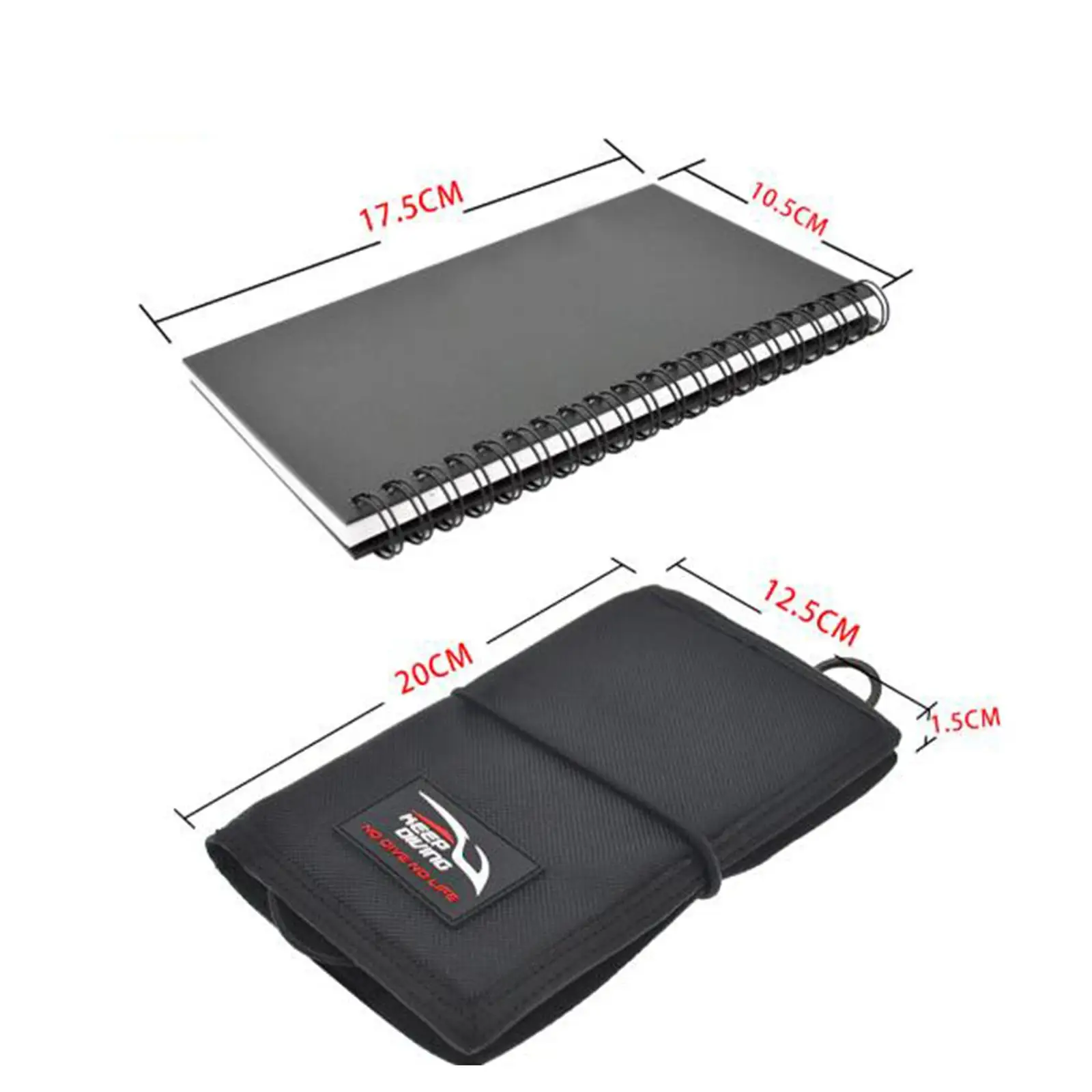 Carnet étanche sous-marin avec couverture noire et crayon d'écriture pour la plongée sous-marine, le snorkeling