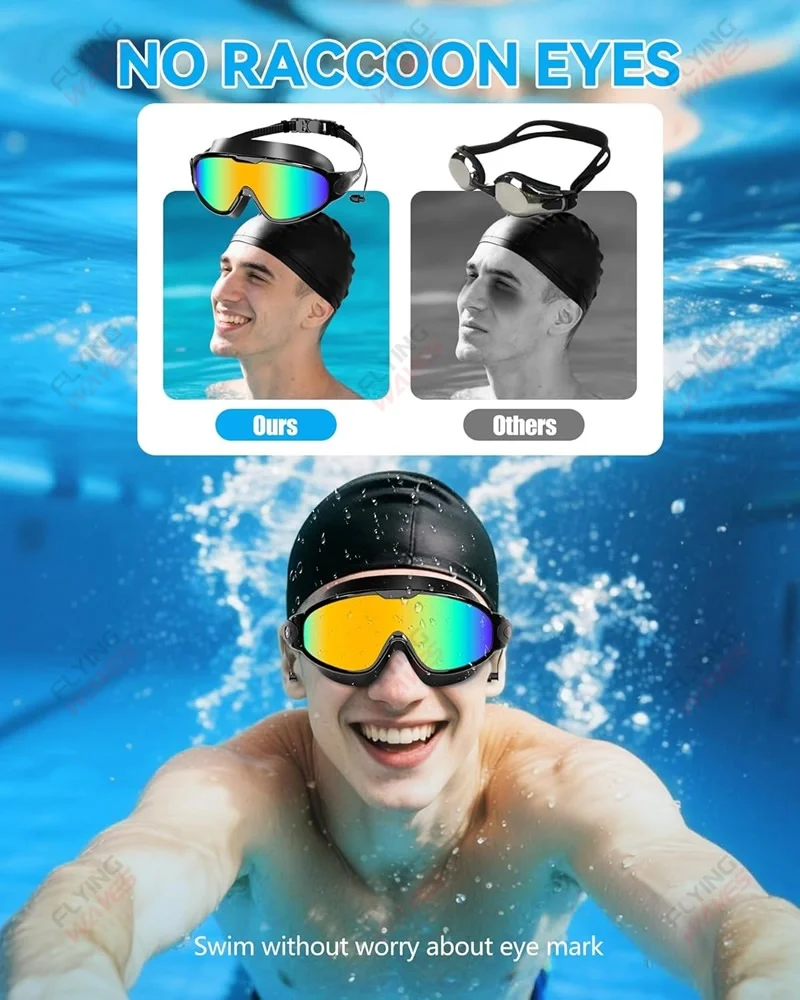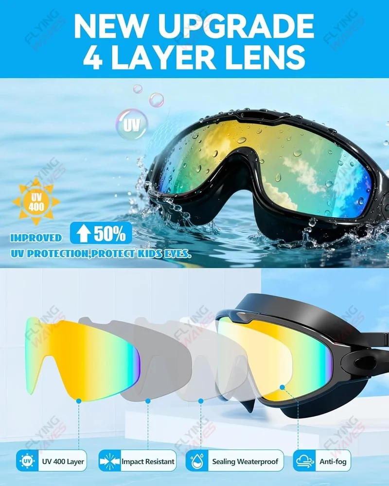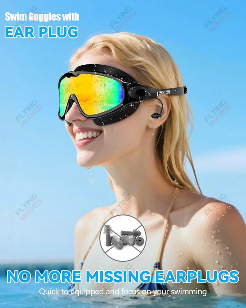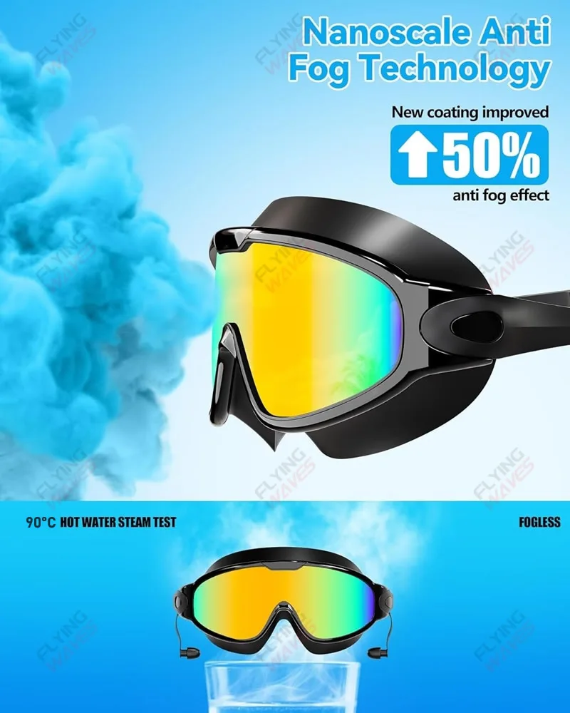 Nouvelles lunettes de natation pour adultes à large champ de vision, anti-buée, anti-UV, sans fuite, avec bouchons d'oreilles pour hommes, femmes et jeunes