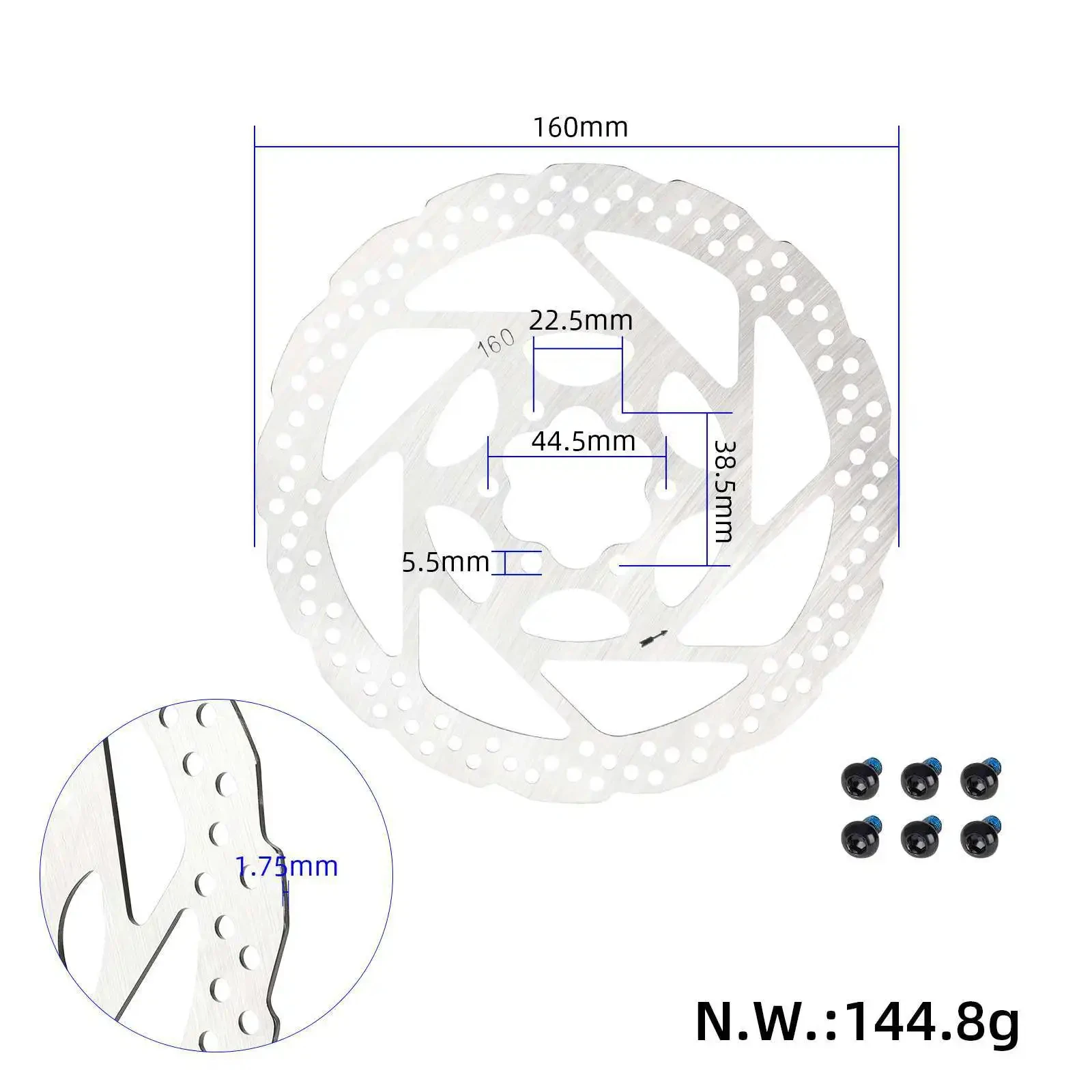 Disque de frein à 6 trous de 160 mm avec vis T25 pour scooter électrique Kukirin G2 G4, pièces et accessoires de frein à disque