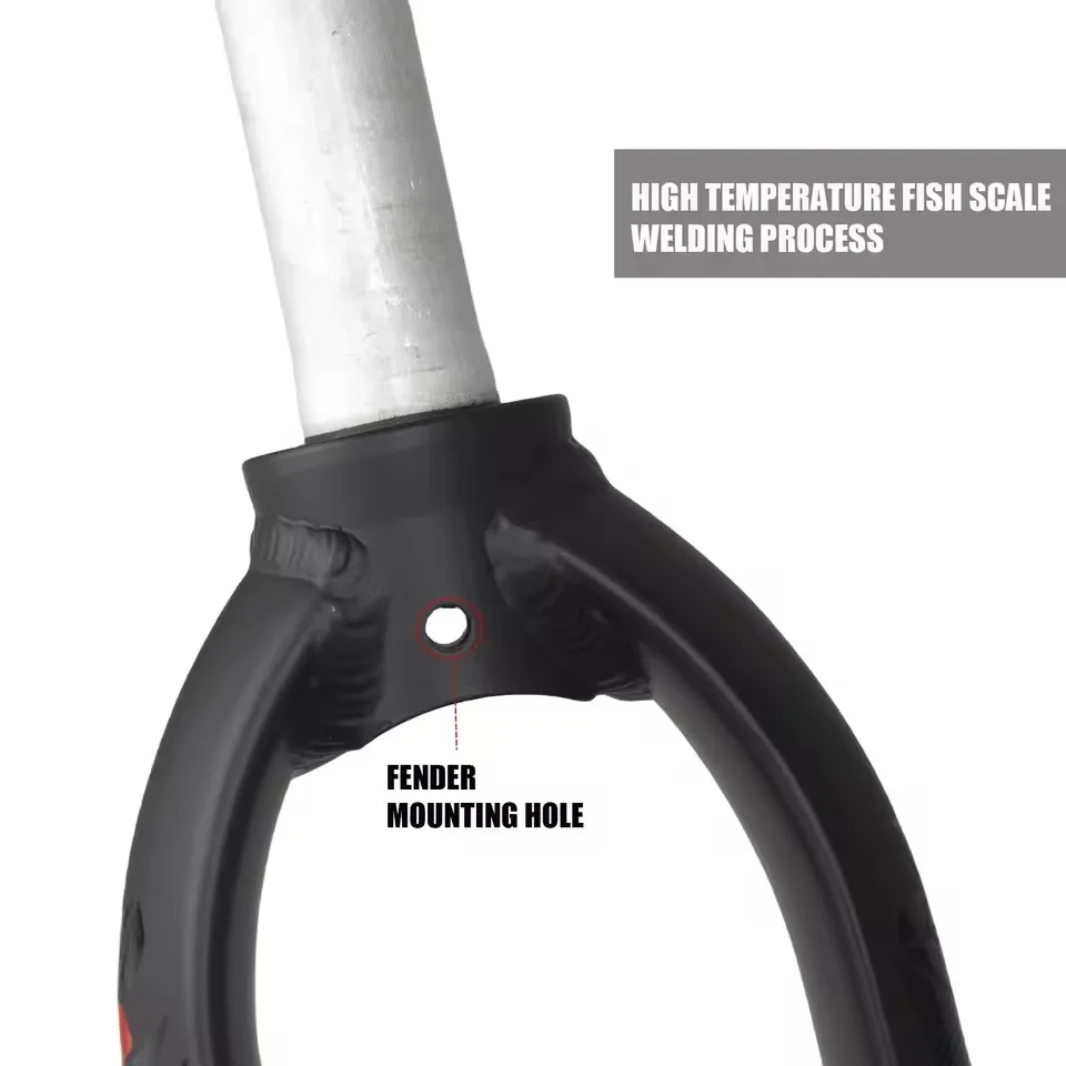- Alliage d'aluminium 7005, à la fois résistance et confort, conception de fourche en diamant épais pour offrir une forte rigidité et une ténacité élevée.