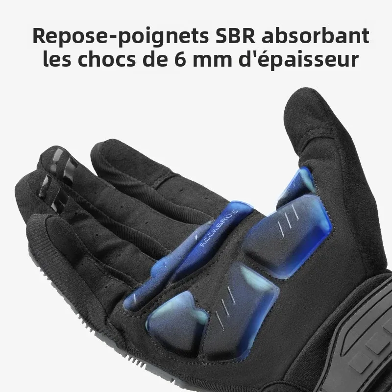 Gants de vélo ROCKBROS, rembourrage SBR épaissi, antichoc, respirant, gants de vélo en gel, gants de sport d'hiver, gants de vélo tout-terrain à doigts complets