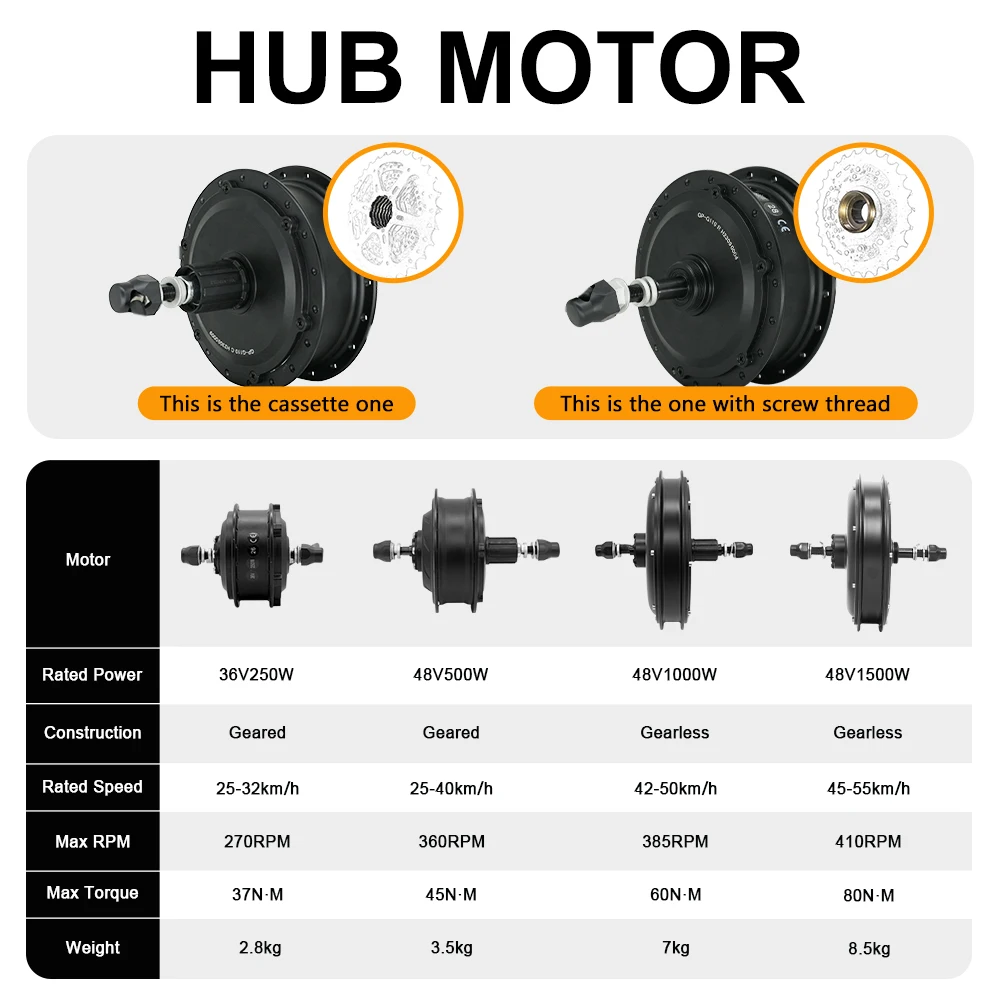 Kit de vélo électrique 48V 1500W 1000W 500W, moteur de Cassette arrière, moteur de moyeu de roue 36V 250W, Kit de Conversion de vélo électrique avant