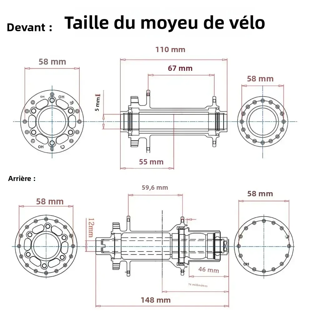 Veuillez noter que la taille d'ouverture du cadre arrière est de 148 mm. La taille de la fourche avant est de 110 mm