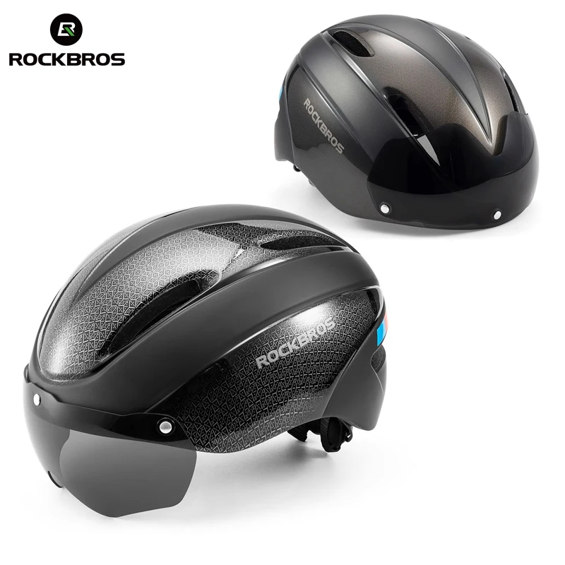 ROCKBROS-Casque de vélo léger moulé intégralement avec lunettes pour homme et femme, casque de vélo VTT, casque de vélo de route de montagne, feux arrière