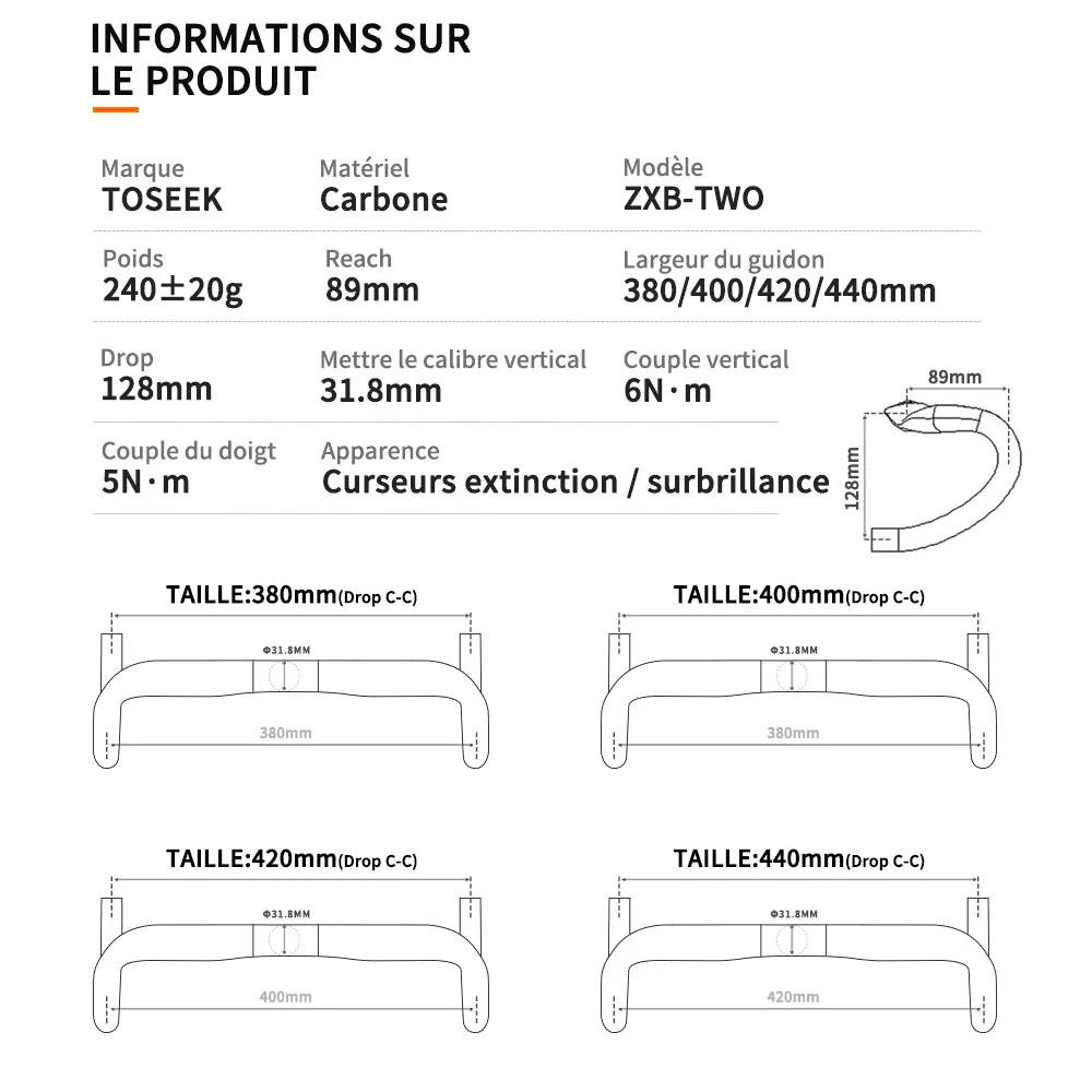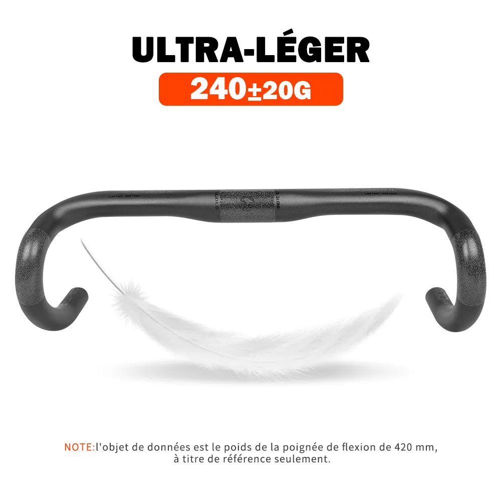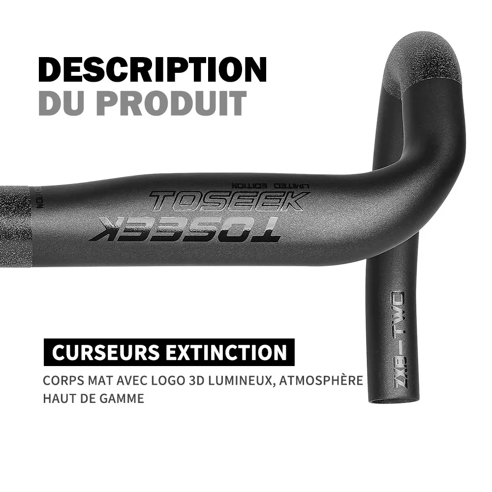 TOSEEK – guidon de vélo de route en Fiber de carbone, barre coudée, noir mat, 40/42/44 cm, routage externe