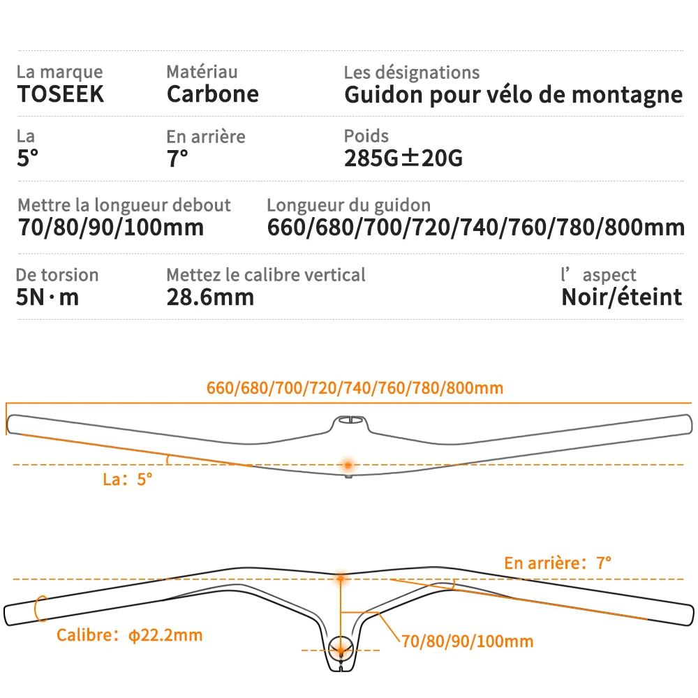 TOSEEK – guidon et tige de vtt intégrés en carbone, 660mm, -17 degrés, pour vtt, 800 ~ 100*70/80/90/mm, pièces de bicyclette