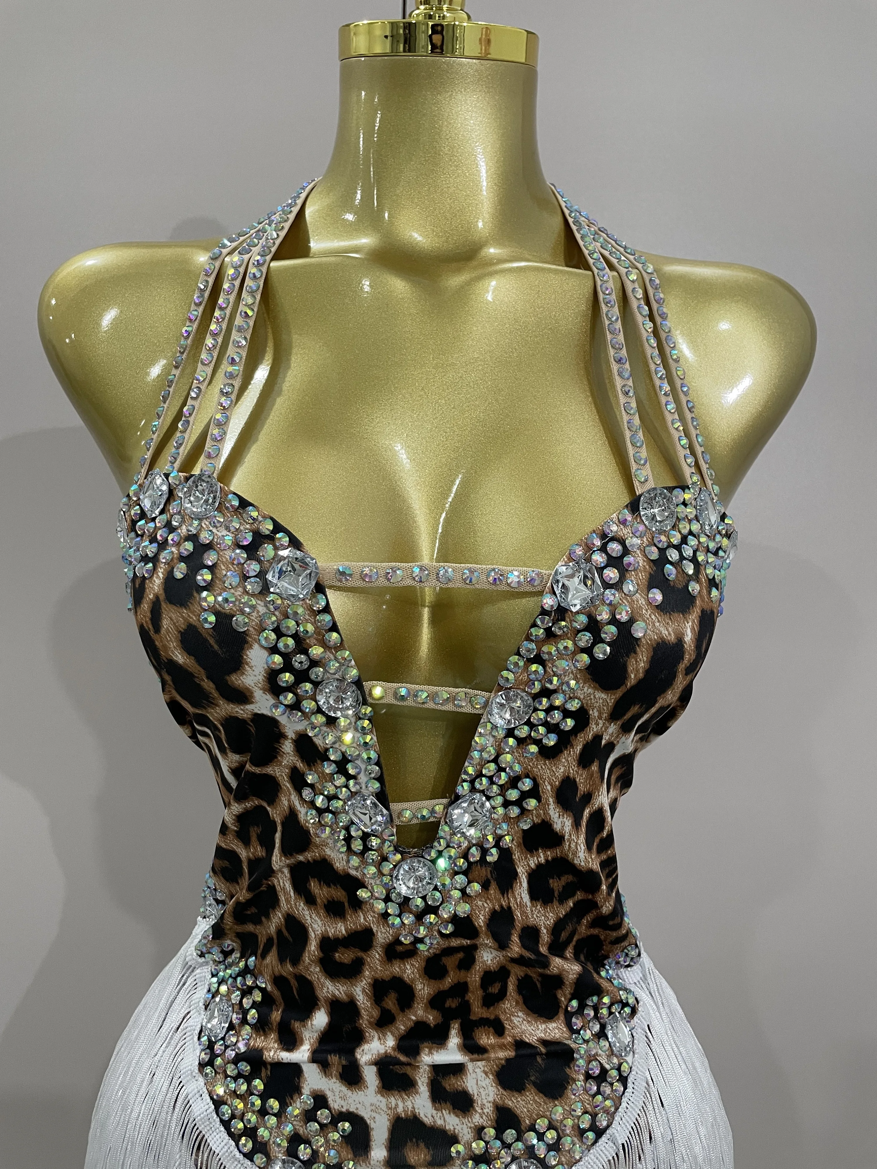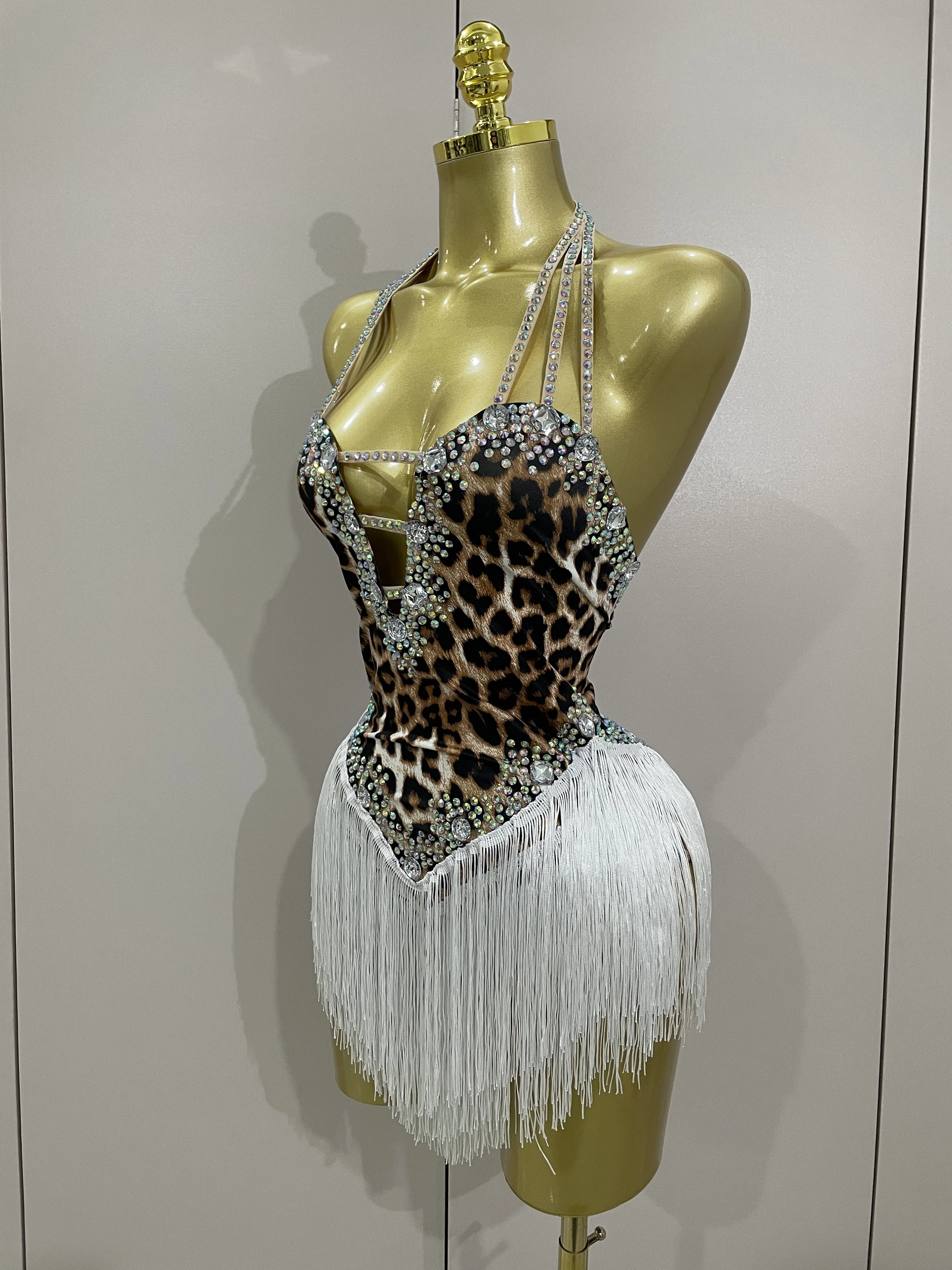 2025 nouveau Sexy brillant strass imprimé léopard gland body femmes soirée anniversaire discothèque Performance scène Costume