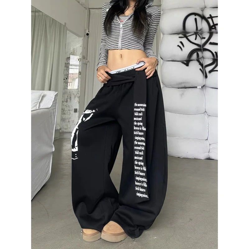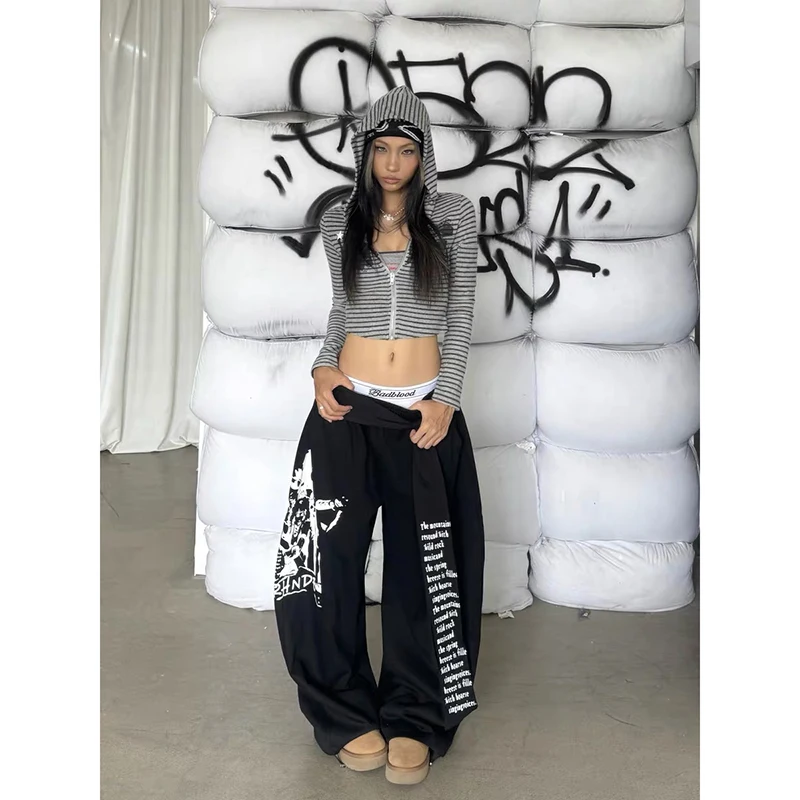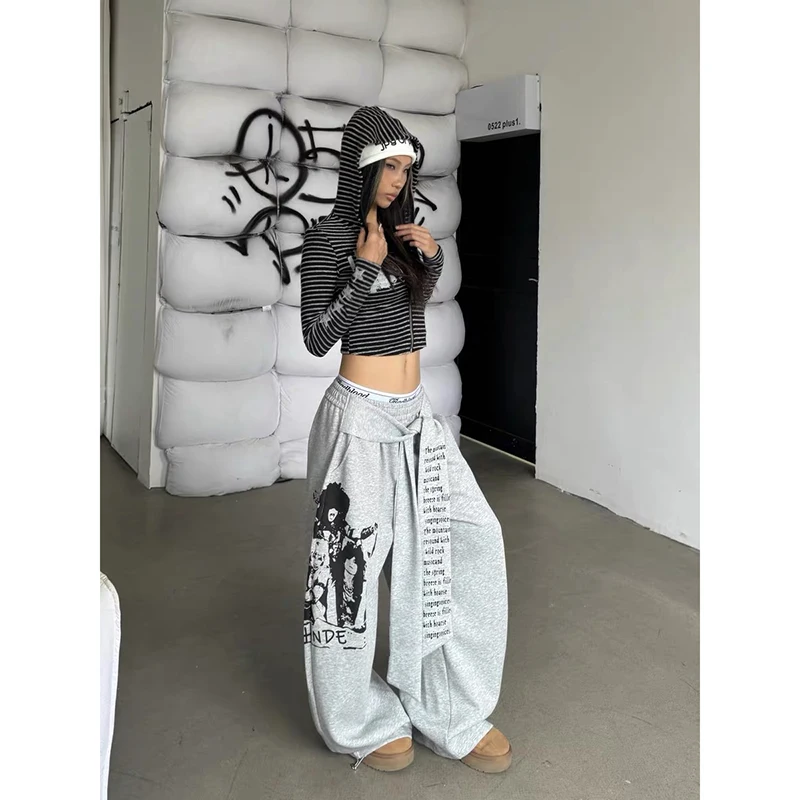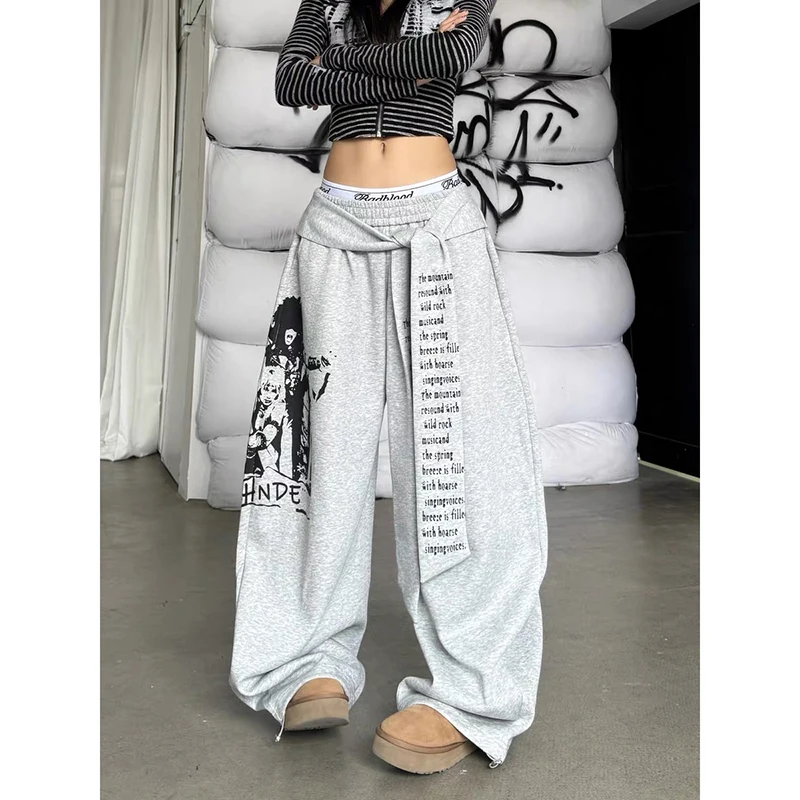 ZHIZOU femmes gris gothique Baggy Y2k lettre impression pantalon Harajuku années 2000 Vintage surdimensionné pantalons de survêtement pantalon à jambes larges automne 2025