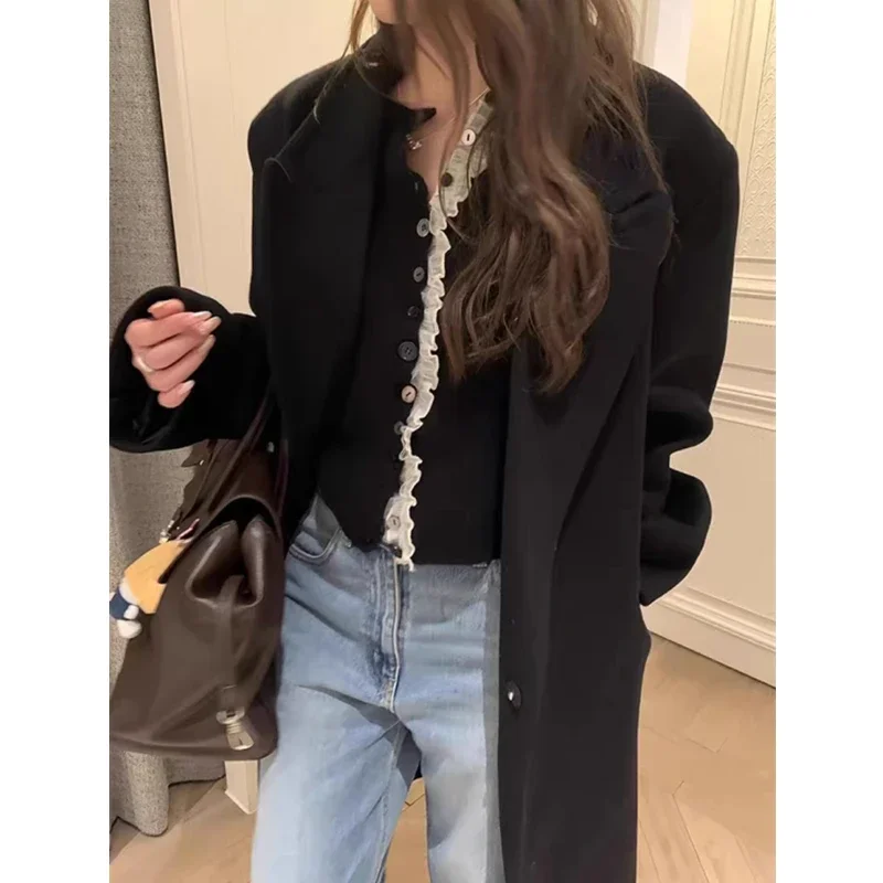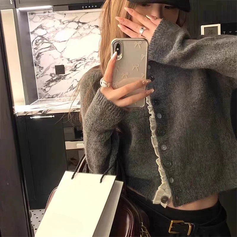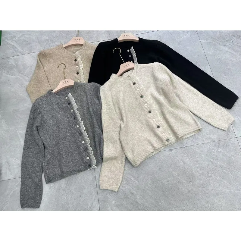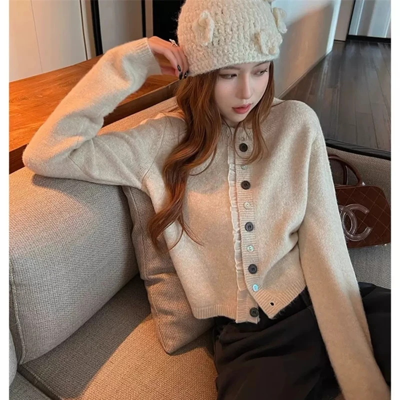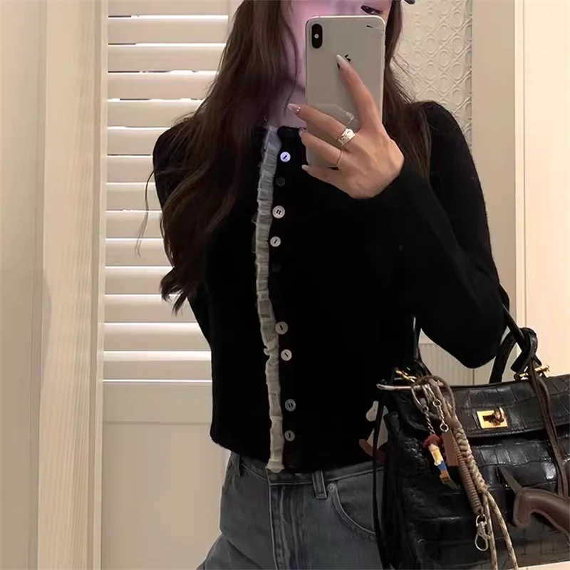 Cardigan en dentelle douce pour femme, col rond, couleur unie, doux, coréen, nouvelle mode printemps automne, manteau polyvalent à manches longues pour femme