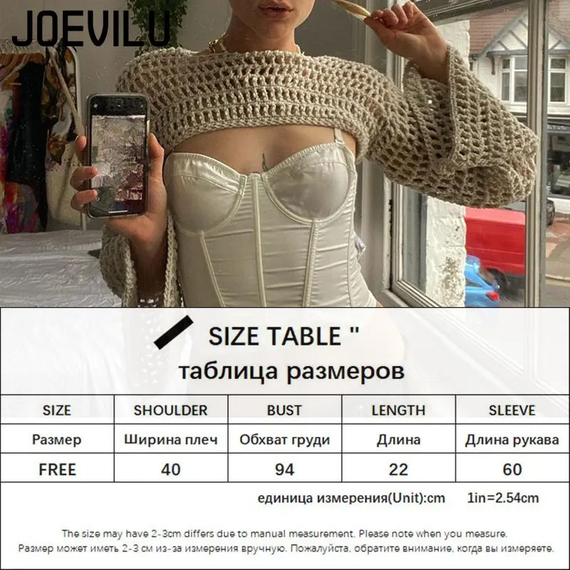 Haut court ajouré en tricot au Crochet pour femmes, chemisier Sexy Y2k, chemises à manches longues évasées, pull Cover Ups, Streetwear, été