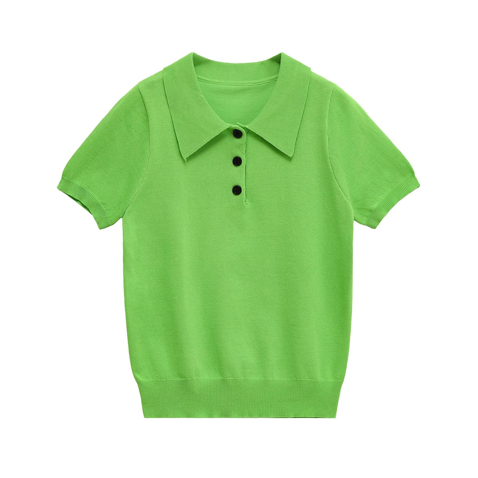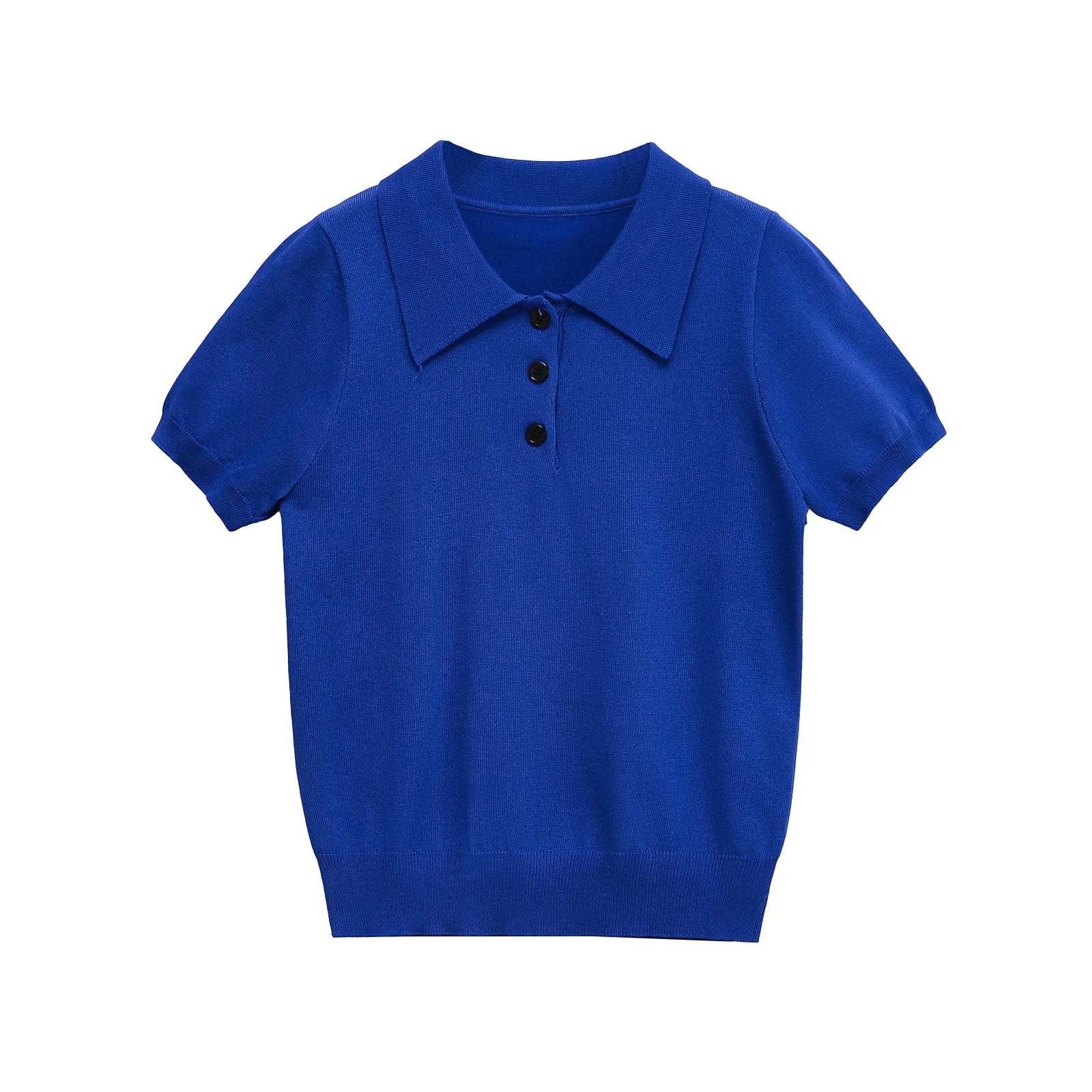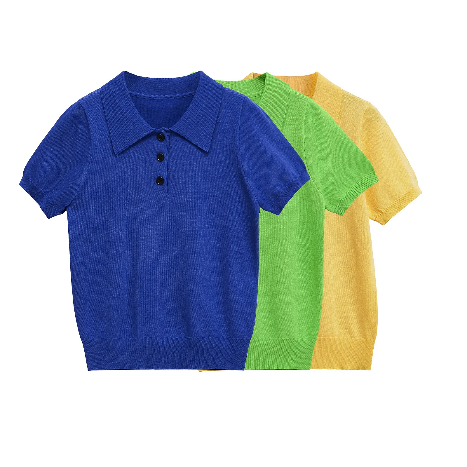 Hauts décontractés pour femmes, couleur unie, pull tricoté à revers, côtelé, manches courtes, nouvelle mode, haut de vacances d'été