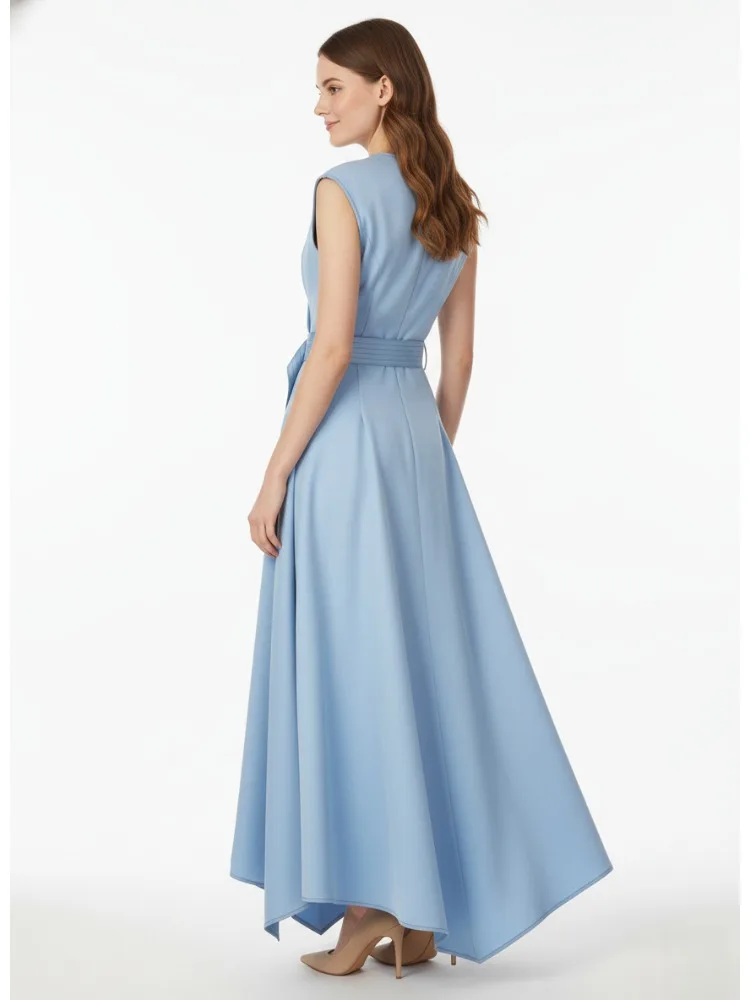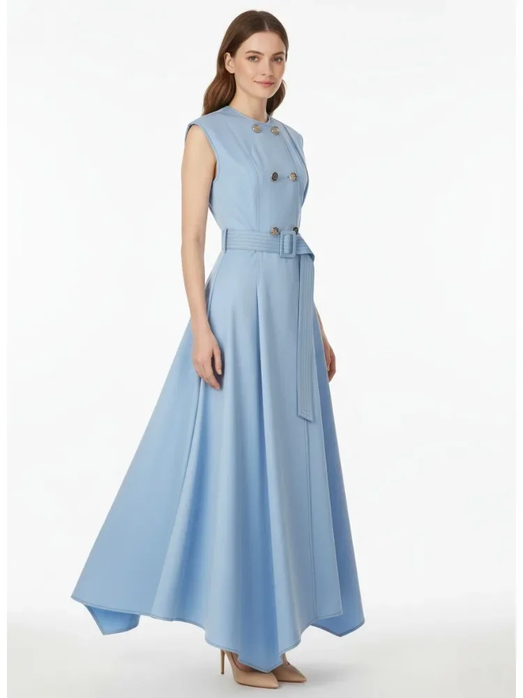 Robe mi-longue plissée sans manches, Double boutonnage, ceinturée, élégante, couleur unie, ligne a, robes de soirée, nouvelle collection été 2025