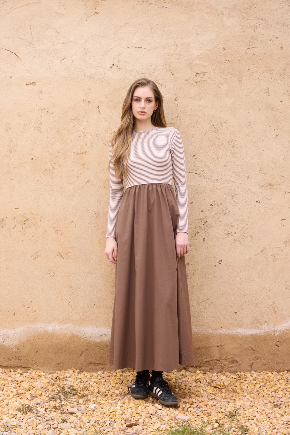 Robe patchwork rayée AS SS26, vêtements confortables pour femmes