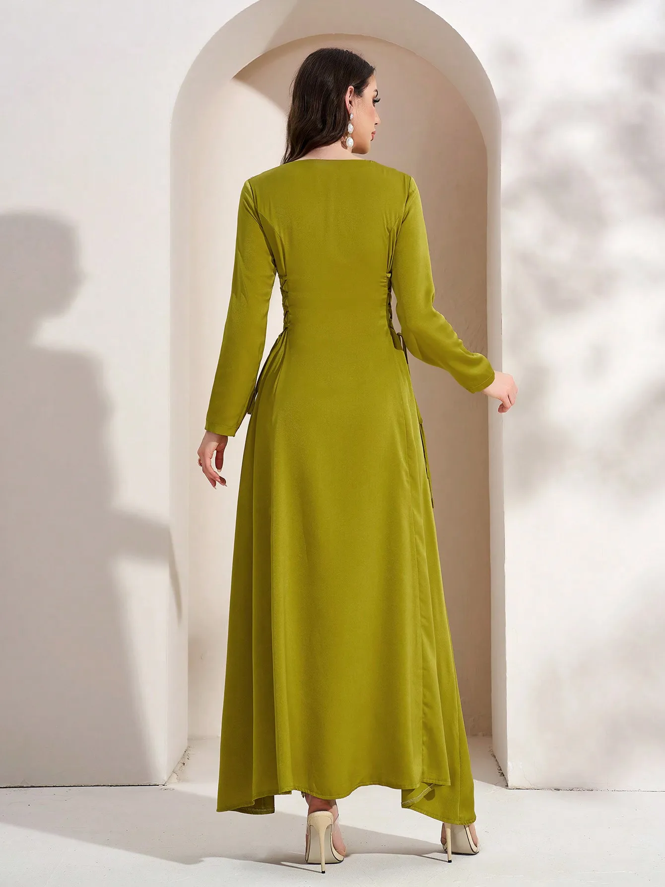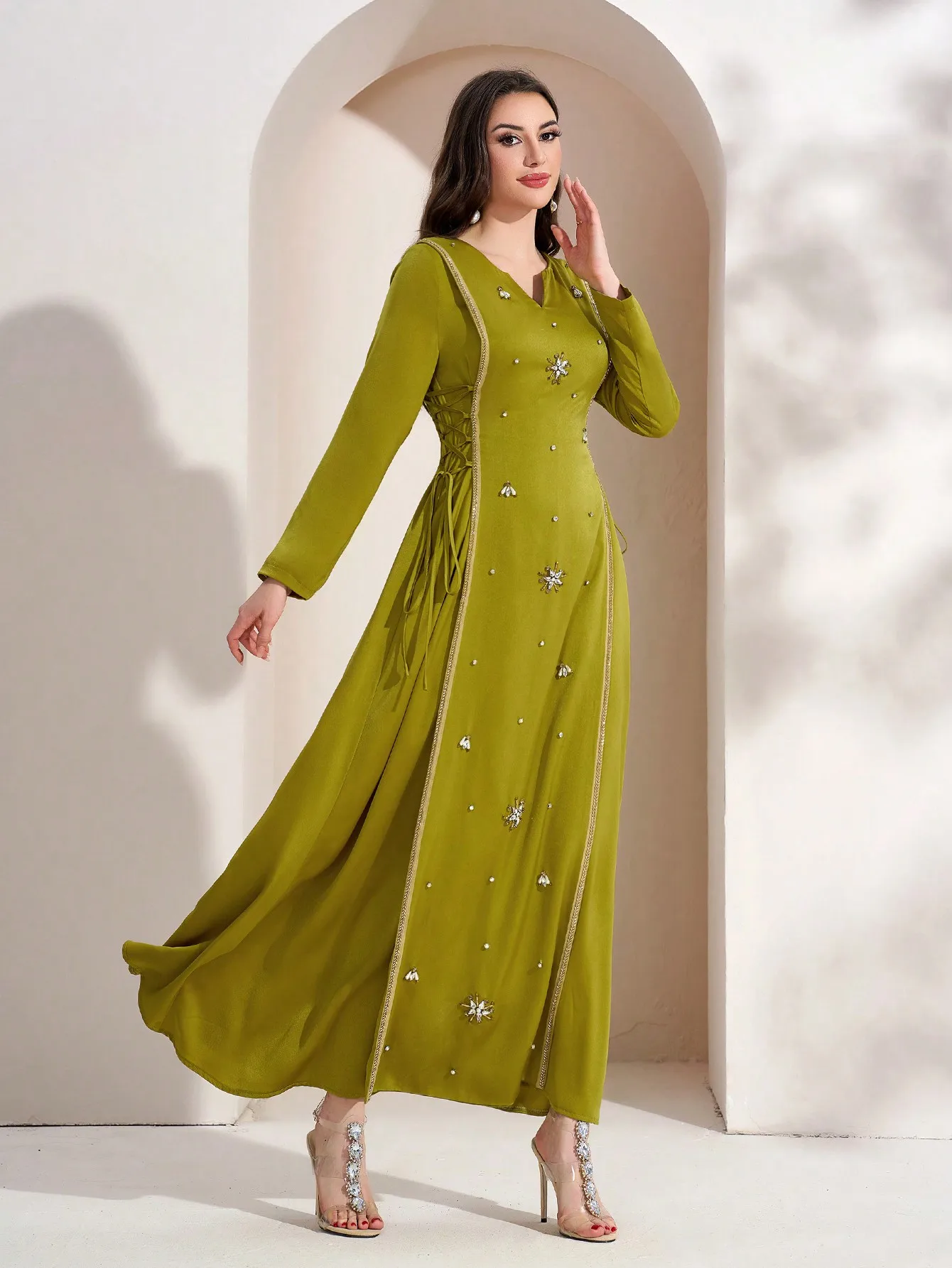 TOLEEN 2025 nouvelles femmes cran cou à lacets élégant à manches longues robe arabe de luxe cristal solide fête soirée robes formelles