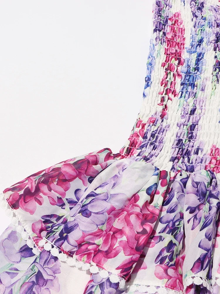TWOTWurea-Robe sexy à volants épissés pour femmes, YLE Turnblock, imprimé, sans bretelles, fibre, taille haute, robes amincissantes, femme, nouveau