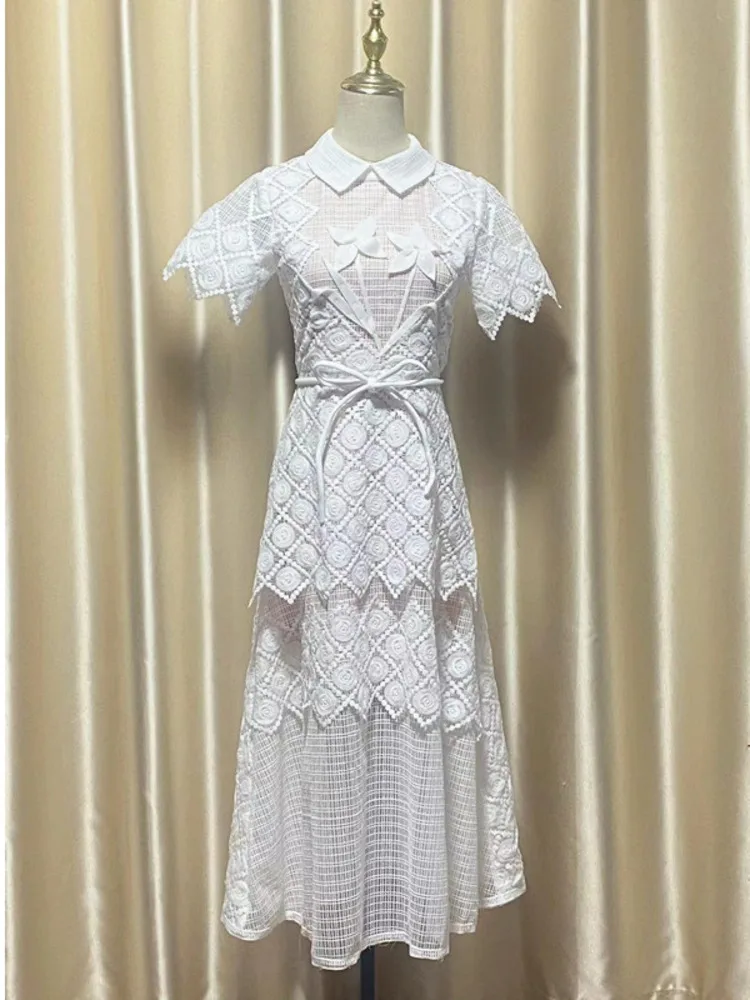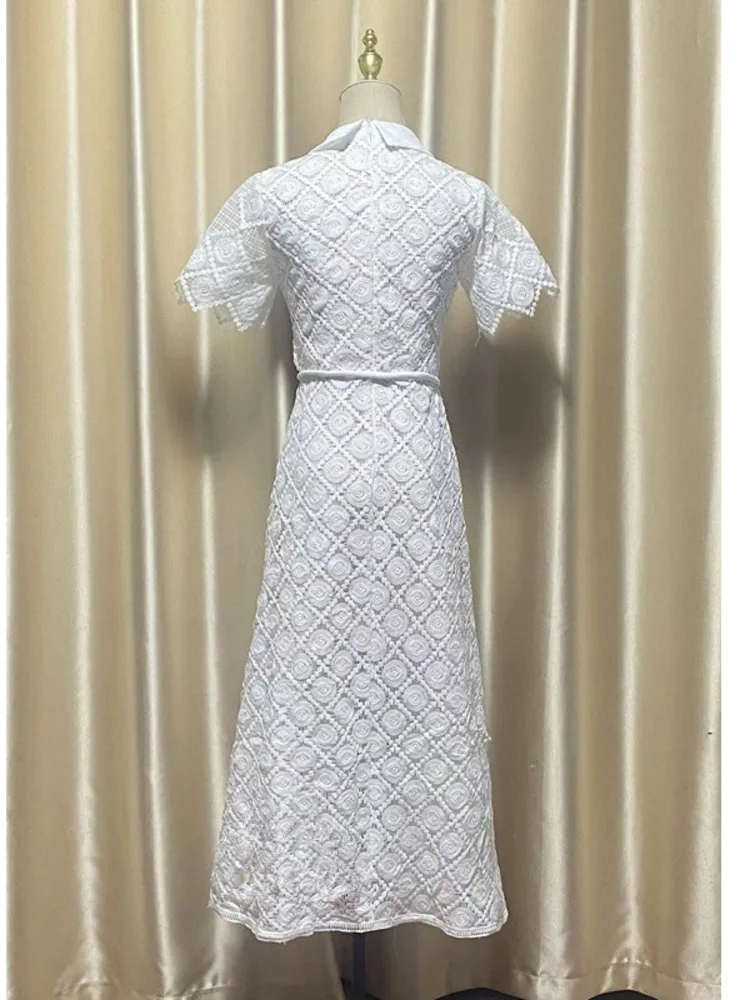 VTKW 2025 femmes élégant Vintage dentelle revers cravate-taille robe de soirée automne concepteur robe de soirée couleur unie Patchwork Chic nouveau