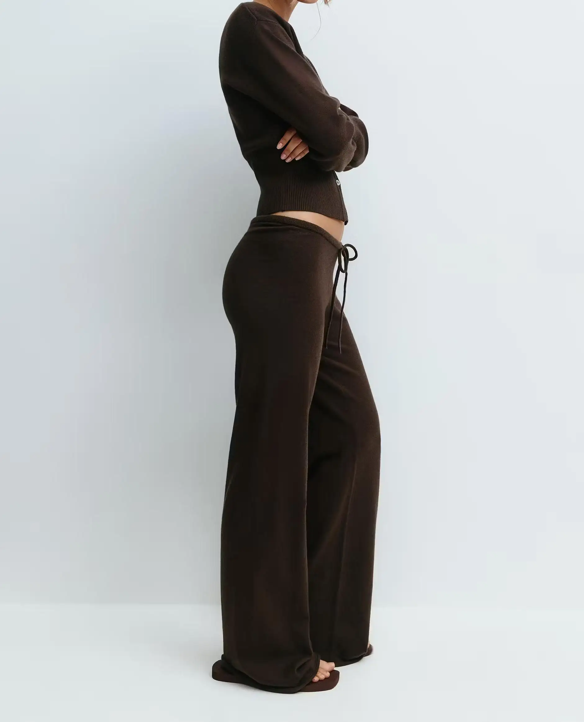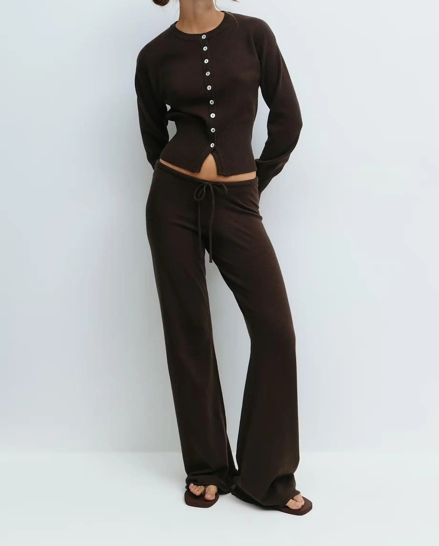 Costume pull en tricot de Style coréen pour femme, ensemble deux pièces avec fermeture éclair, ample, tricoté, jambes larges, nouvelle collection automne et hiver
