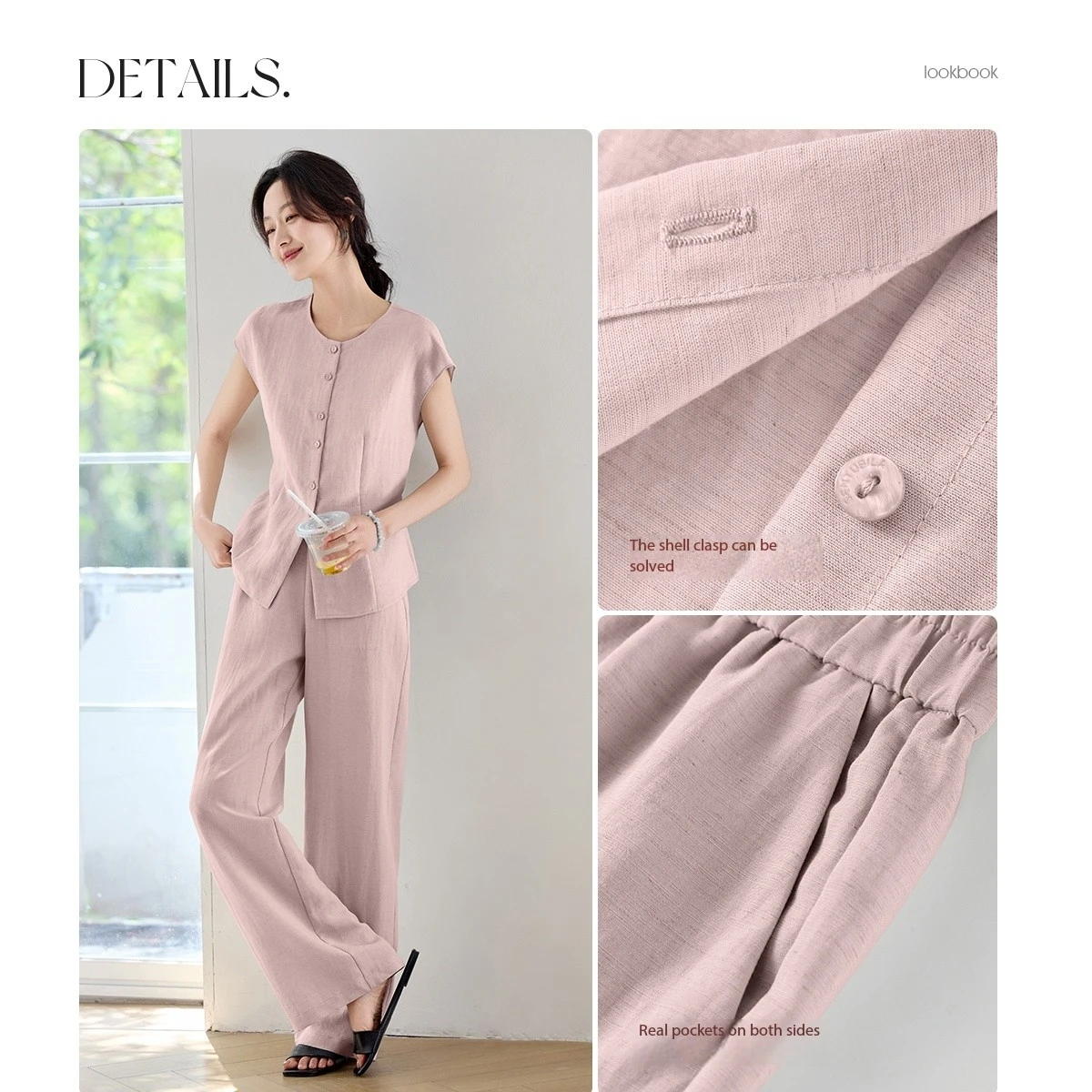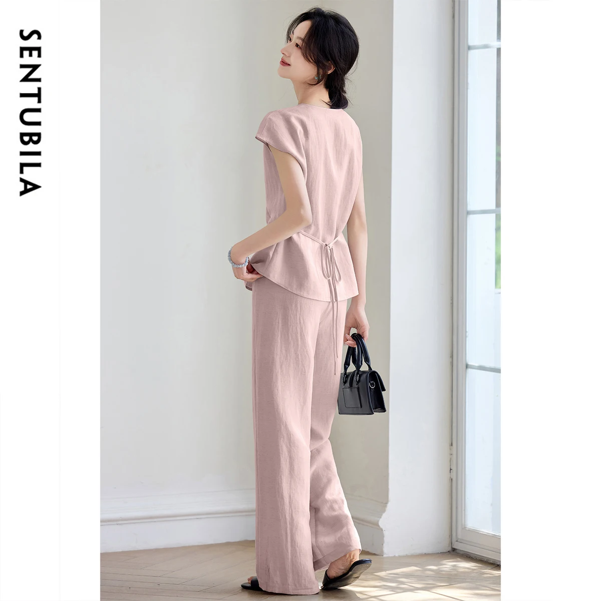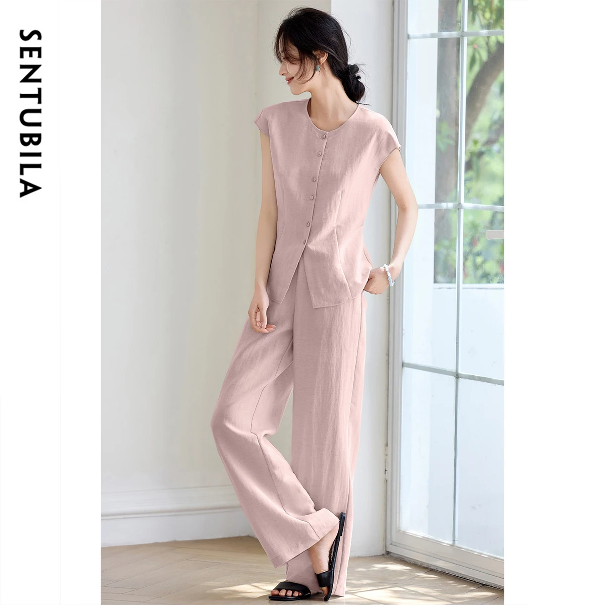 Ensemble tailleur pantalon en lin pour femme SENTUBILA – Collection été 2026 – Chemise boutonnée et pantalon droit – Référence 152ZA0094