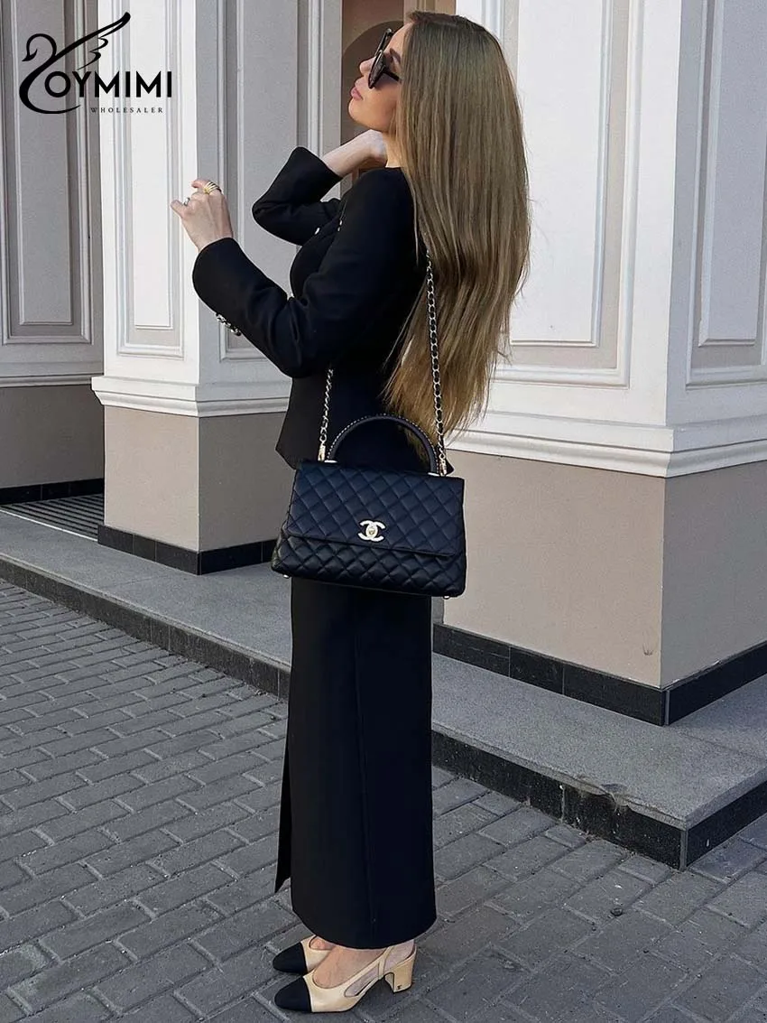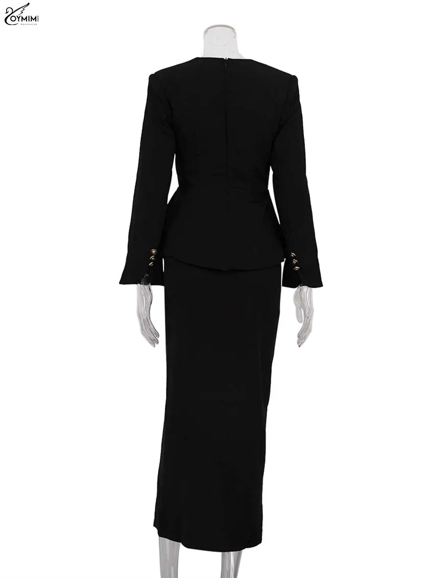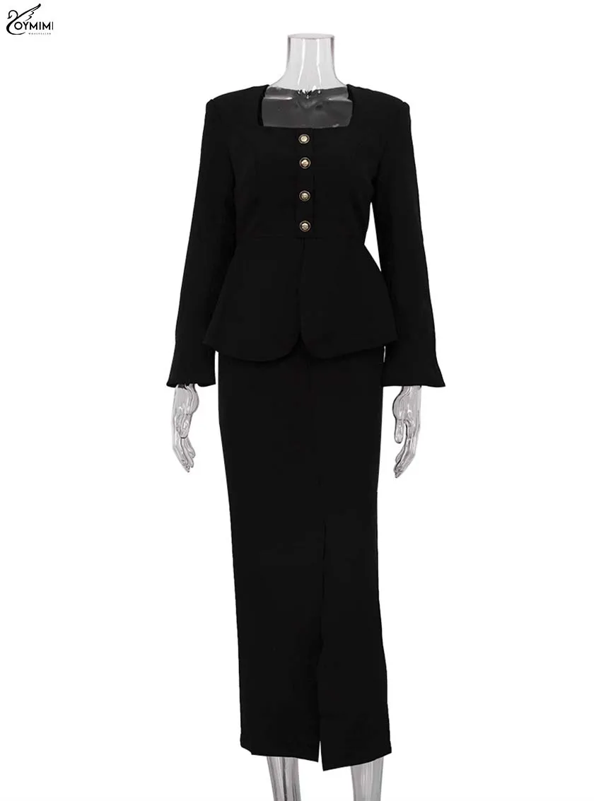 Oymimi élégant noir femme 2 pièces ensemble tenue mode col carré à manches longues bouton chemises et jupes droites longueur cheville ensemble