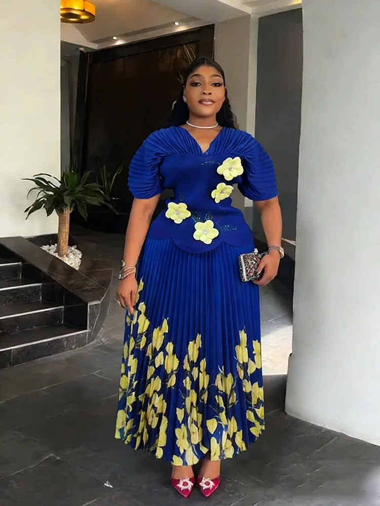 Robes plissées EGRM pour femmes 2026 Robe de soirée de mariage Robe de bal Grande taille Hauts à manches courtes et jupe Ensemble 2 pièces Vêtements 8G1037